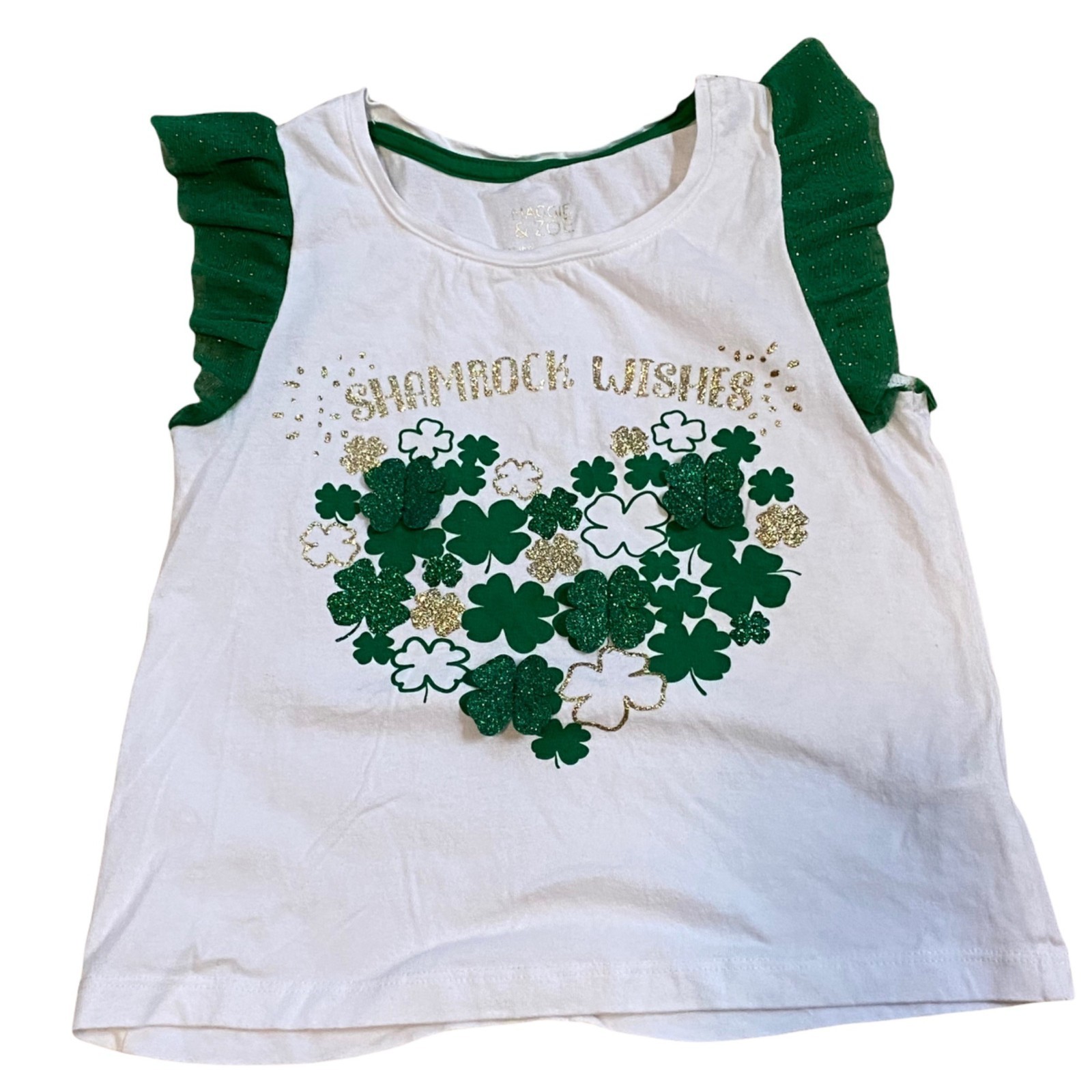 St. Patrick's Day Girls Green Clover Top & Tulle Skirt Sz 6/7