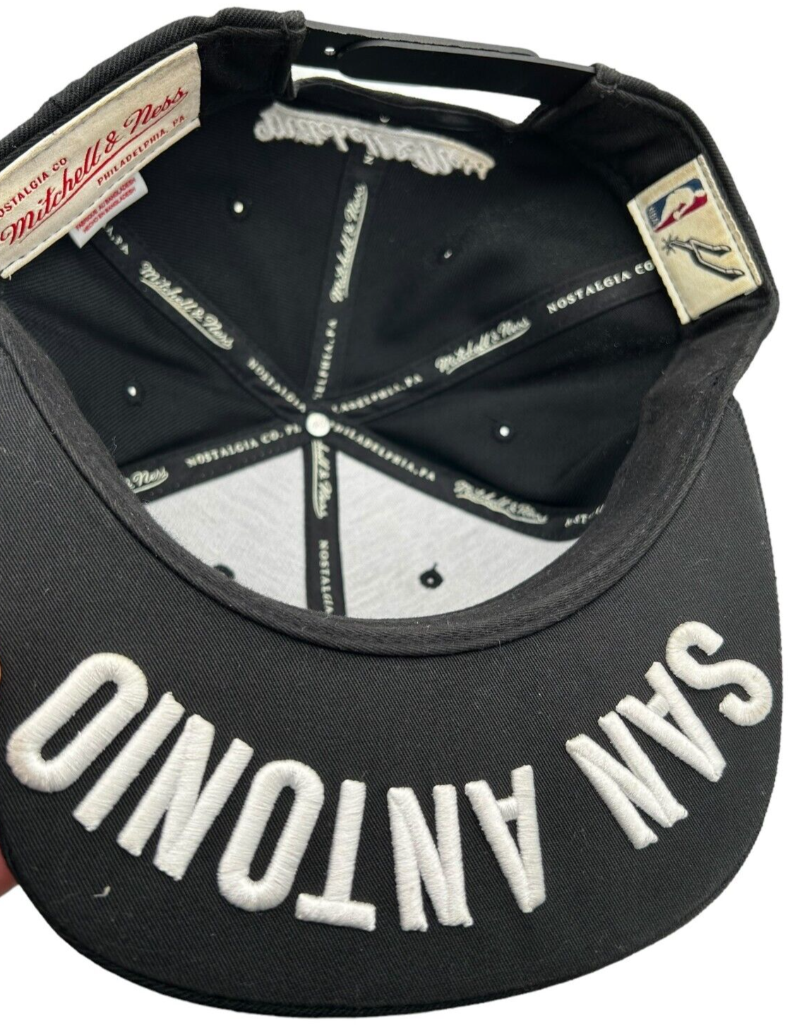 Mitchell Ness San Antonio Spurs Flat Snapback Hat - Spur logo and script underbill