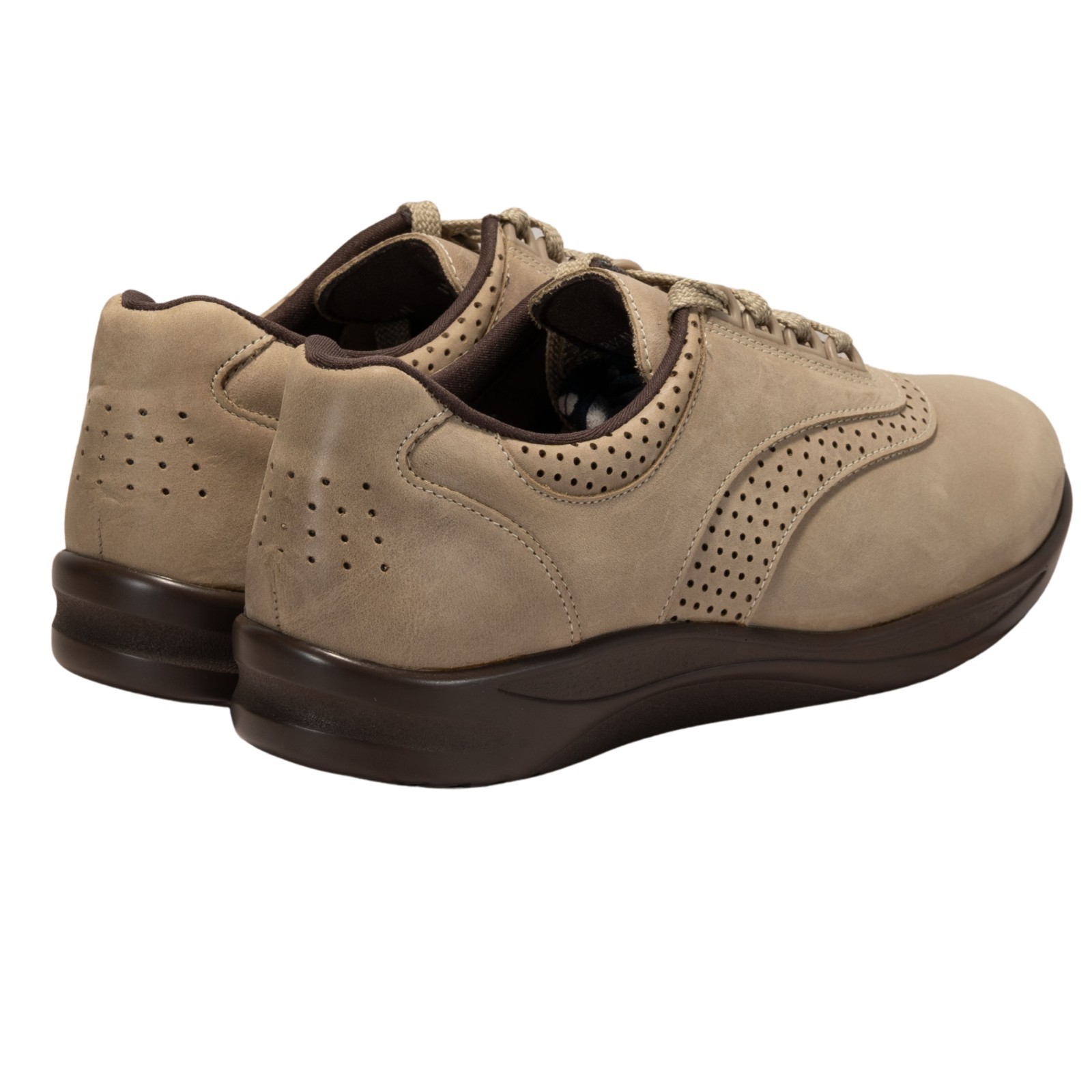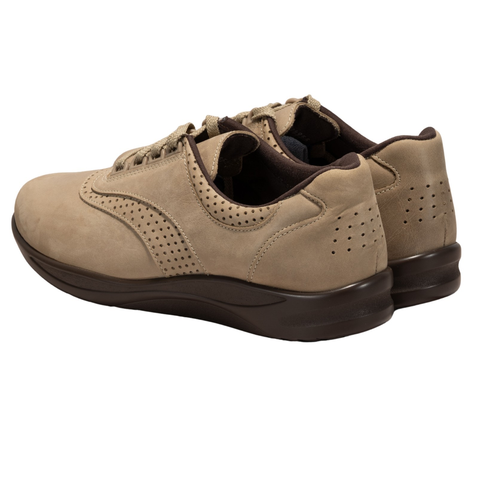 The SAS Walk Easy Sage Nubuck Women's Shoes in size 8.5N are designed for maximum comfort and support. With a low top design, lace-up closure, and round toe shape, these shoes are perfect for travel, activewear, casual outings, and even workwear. The beige nubuck leather upper, polyurethane outsole, and cushioned insole provide excellent arch support and a comfortable fit. Made in the United States, these shoes are also approved for Medicare and orthopedic use, making them a versatile option for women looking for a durable and supportive footwear solution.