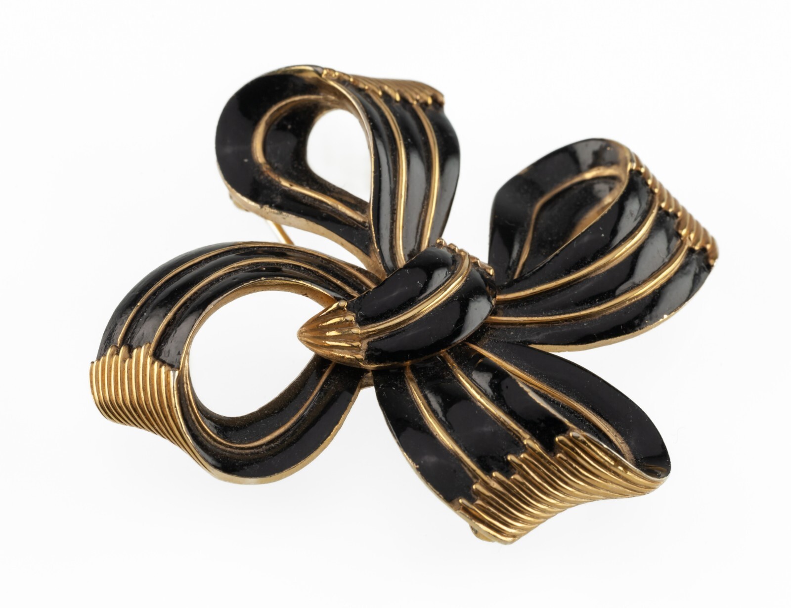 Trifari Goldfarbig Und Schwarz Emaille Four-Loop Schleife Brosche Schon Zustand