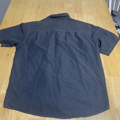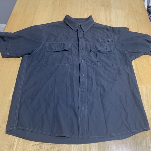 This men's large shirt features short sleeves, a comfortable button-down collar, and convenient pockets, making it an ideal choice for those with an active lifestyle or a love for the outdoors. Made from a blend of cotton, polyester, and possibly other materials, the shirt is machine washable for easy care. Its regular fit ensures a relaxed and comfortable wear for all-day comfort.