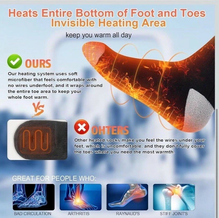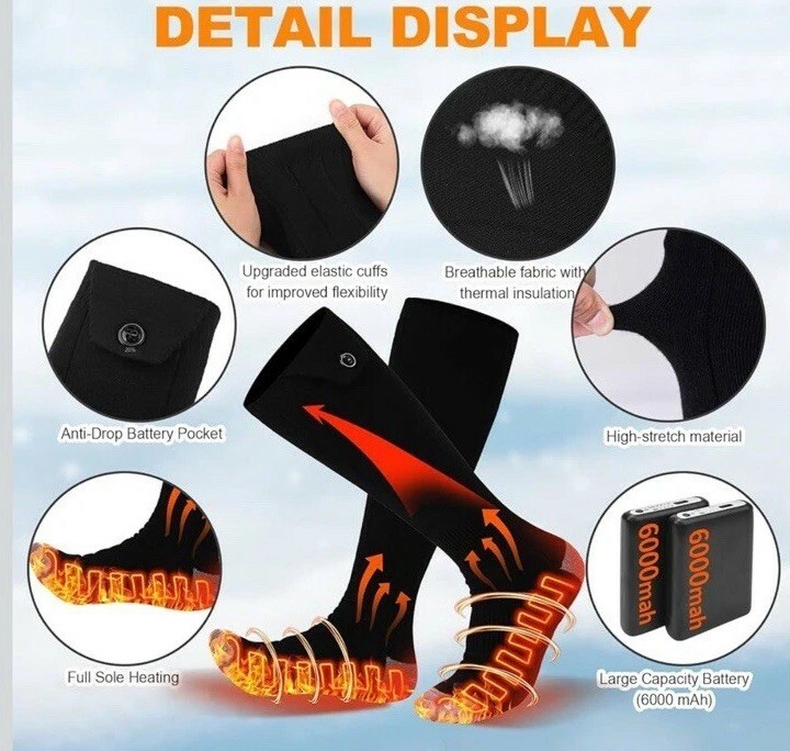 Rechargeable Heated Socks Hunting Fishing Camping Skiing Running