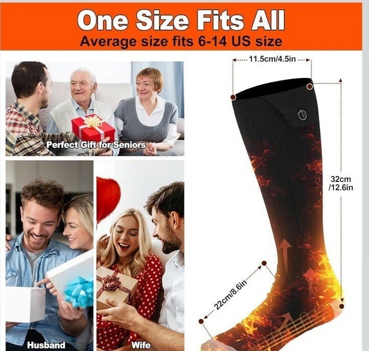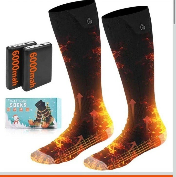 Stay warm and comfortable during outdoor activities with these rechargeable heated socks. Perfect for activities like hunting, fishing, camping, and skiing, these socks provide extra warmth and protection for your feet. With a durable construction and long-lasting battery life, these socks are ideal for those who enjoy spending time outdoors in cold weather conditions. Keep your feet cozy and dry with these brand new heated socks.