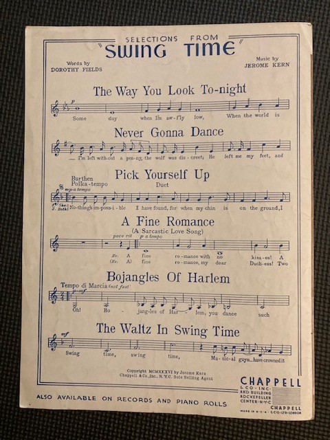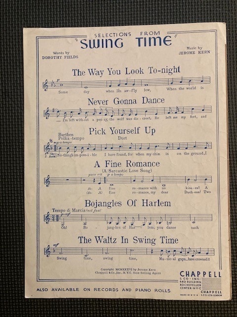 The Way You Look To-night 1936 Sheet Music Swing Time-Fred Astaire Ginger Rogers