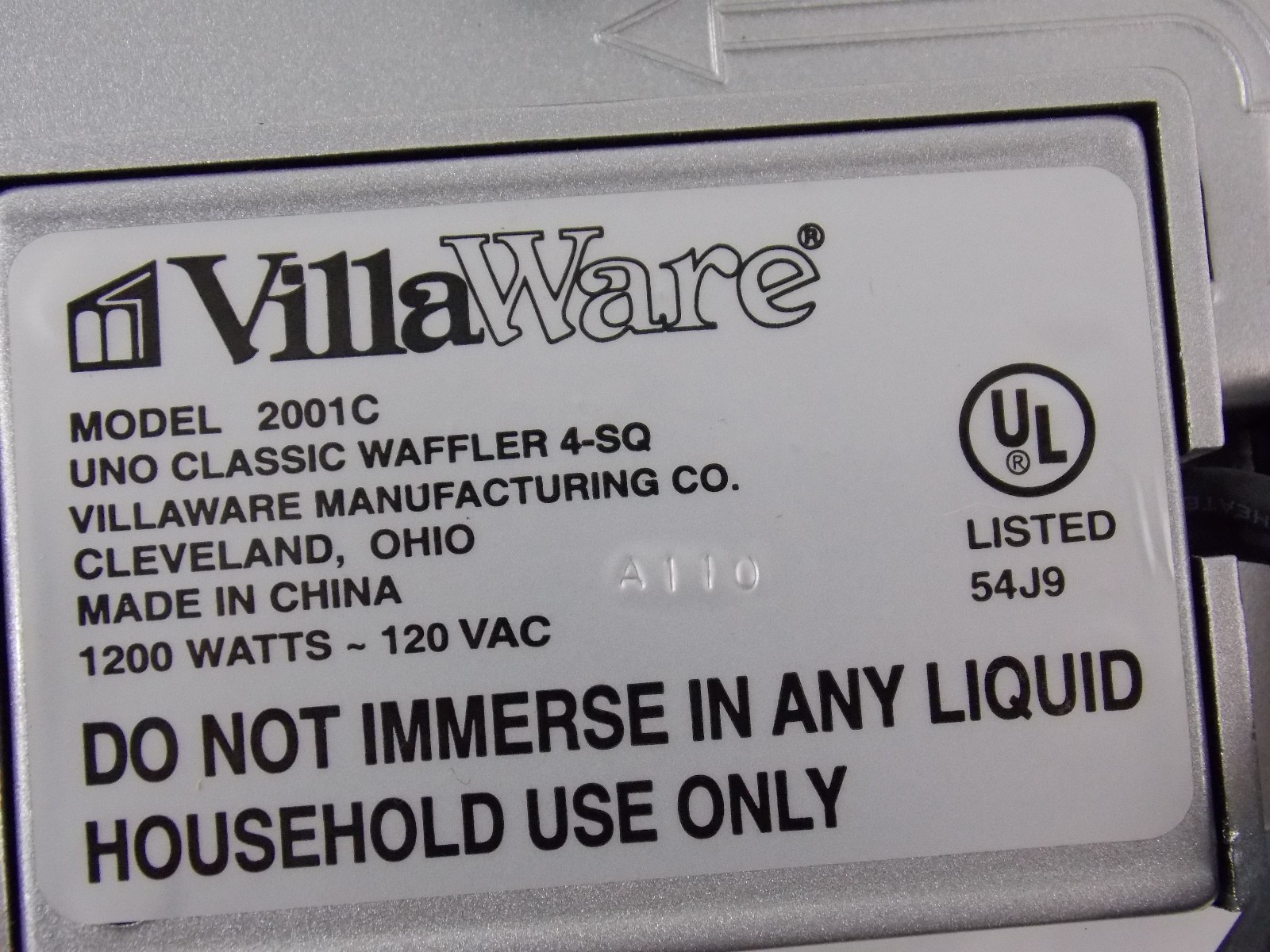 VillaWare UNO Classic 4 Square Waffler Waffle Maker