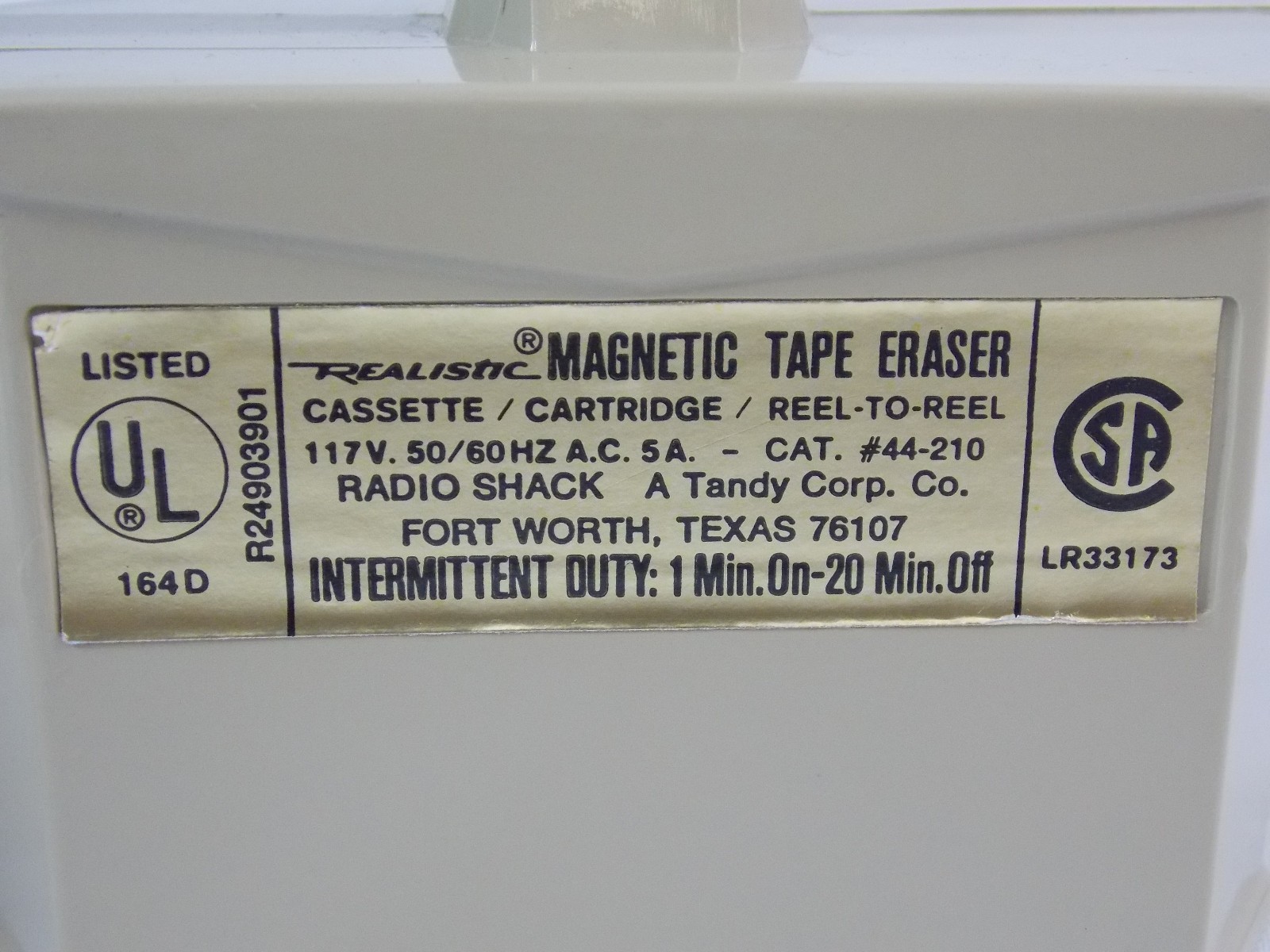 Realistic Magnetic Bulk Tape Eraser 44-210 For Cassette Reel To Reel VHS Vintage