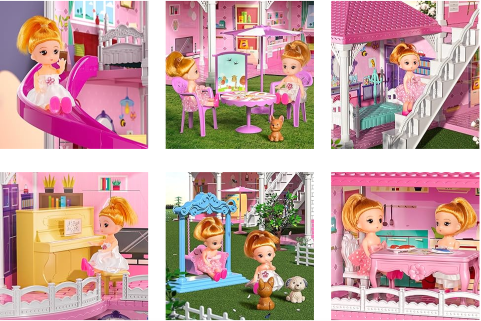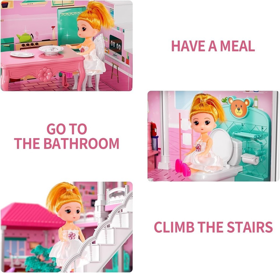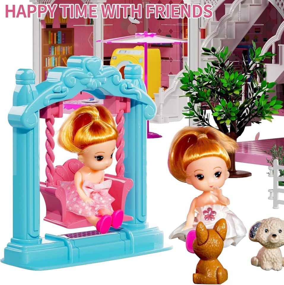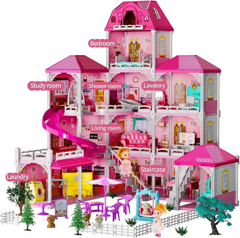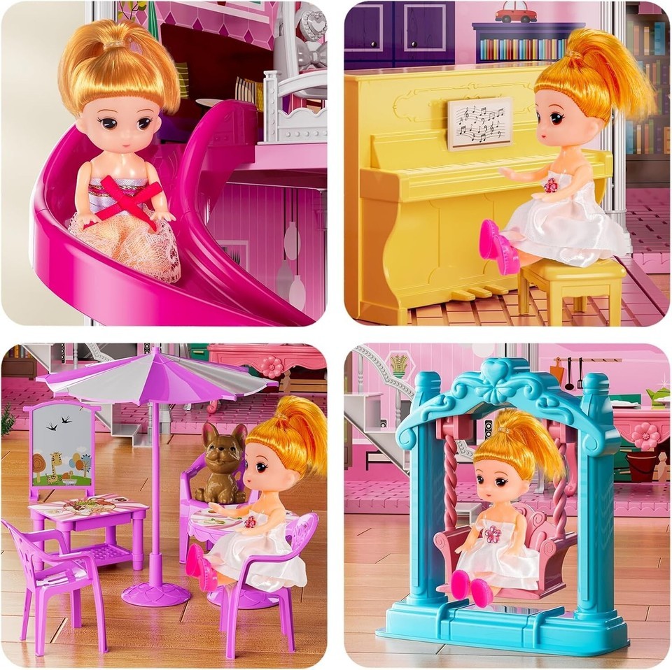 Dream Doll House for 3- 8 Years Old Girls - 4 Storeys 12 Rooms, Indoor Playset with 2 Dolls Toy Figures, Toys Furnished and Accessories, Pretend Girls Plays, Building Toys, Gifts Toy