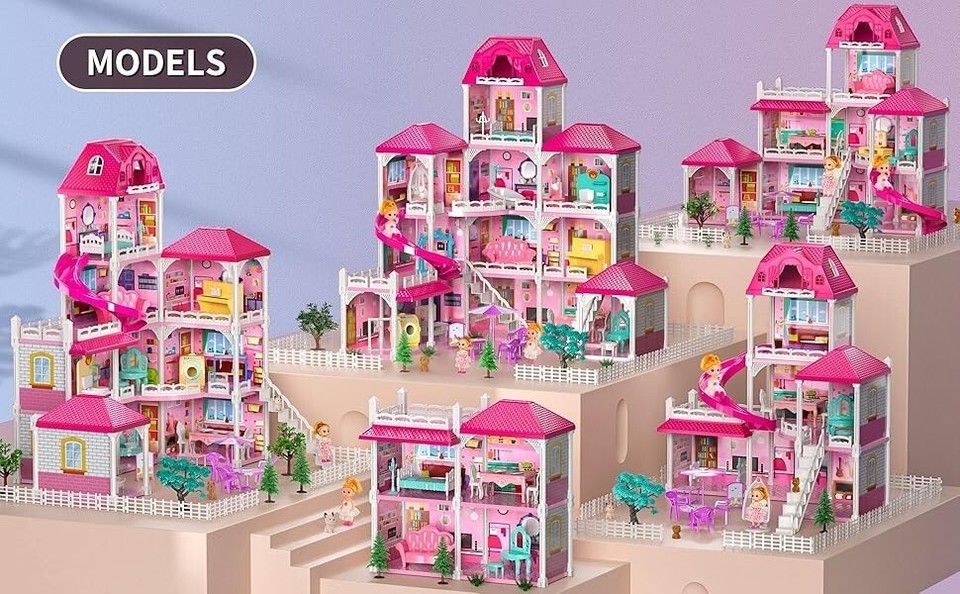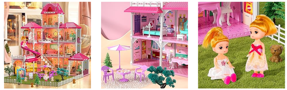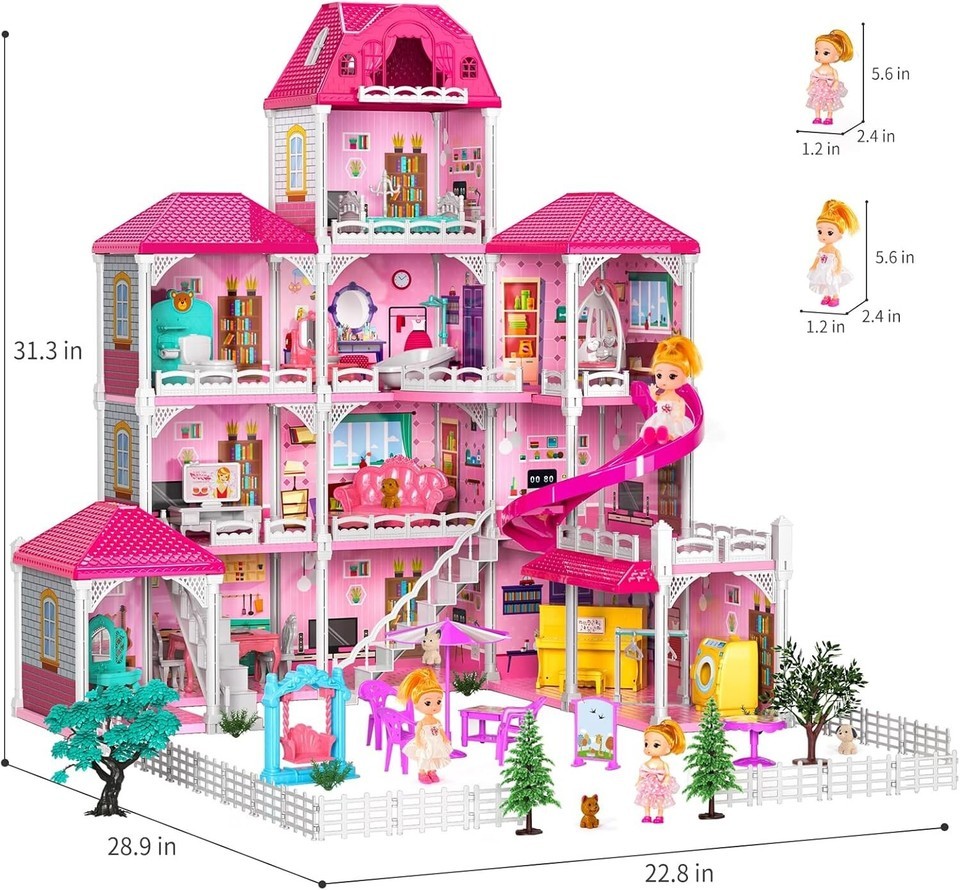 Dolls House for Girls Toys, 4 Stories Dollshouse with 2 Princesses 12 Rooms
