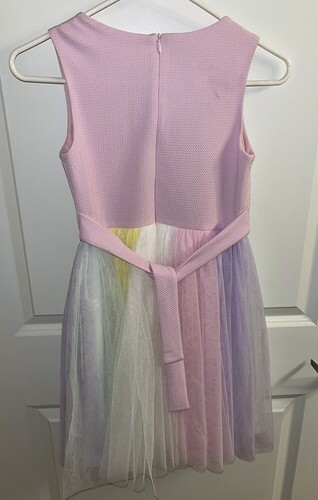 This listing is for a BONNIE JEAN PINK sleeveless DRESS Size 12 pastel rainbow tutu sparkly blue purple.