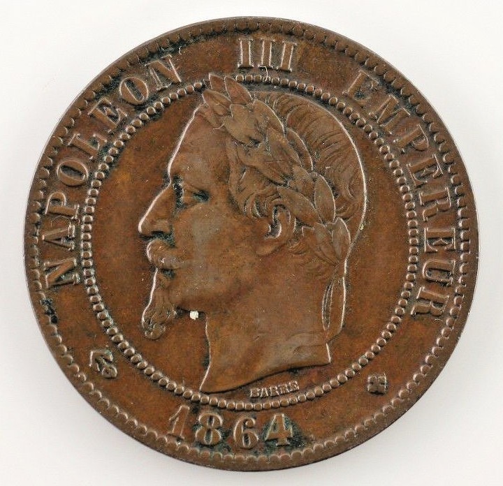 1864-BB France 10 Centime (XF) Condition Extra Fine