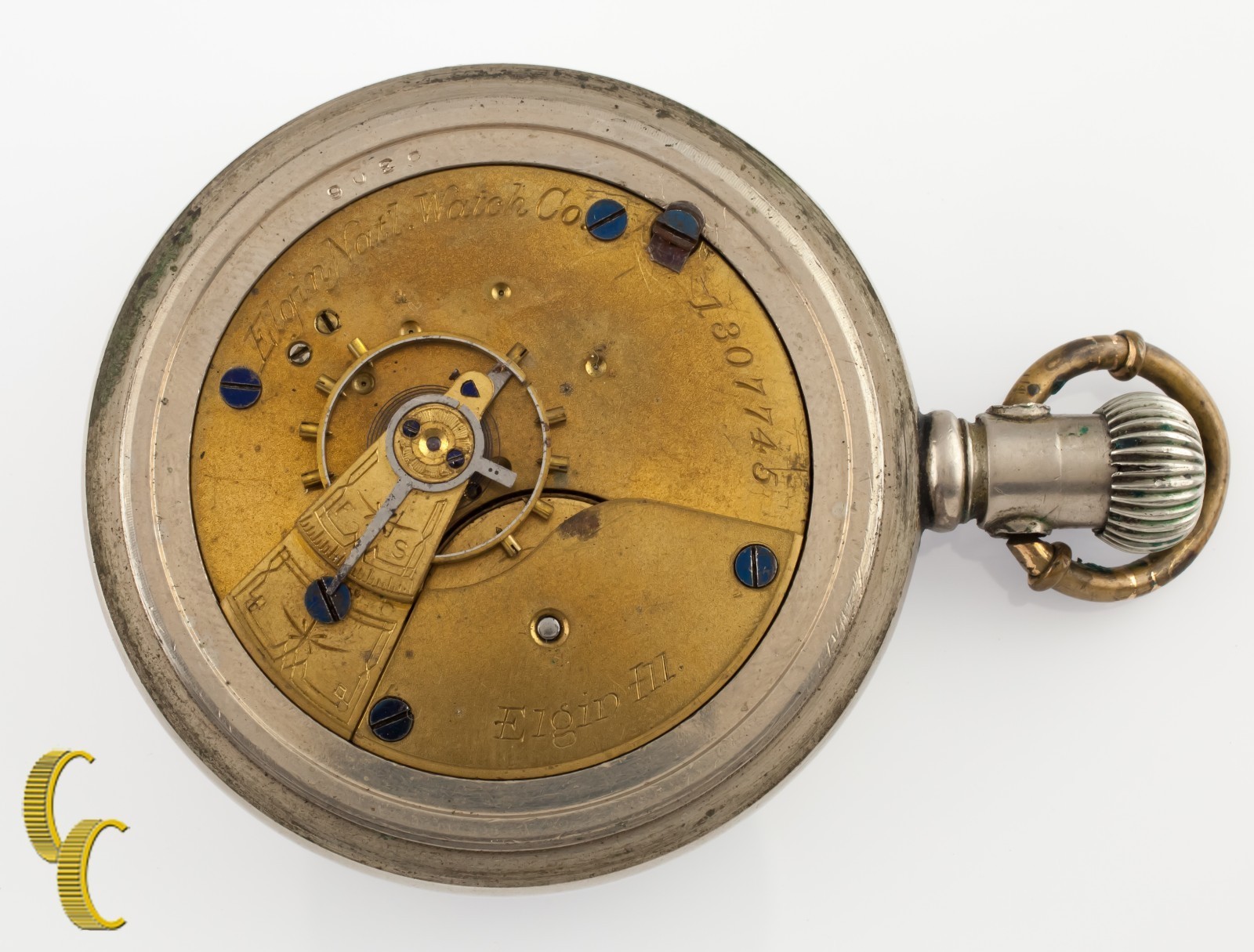 Mouvement Elgin a 7 rubis, numero de serie 1307745.