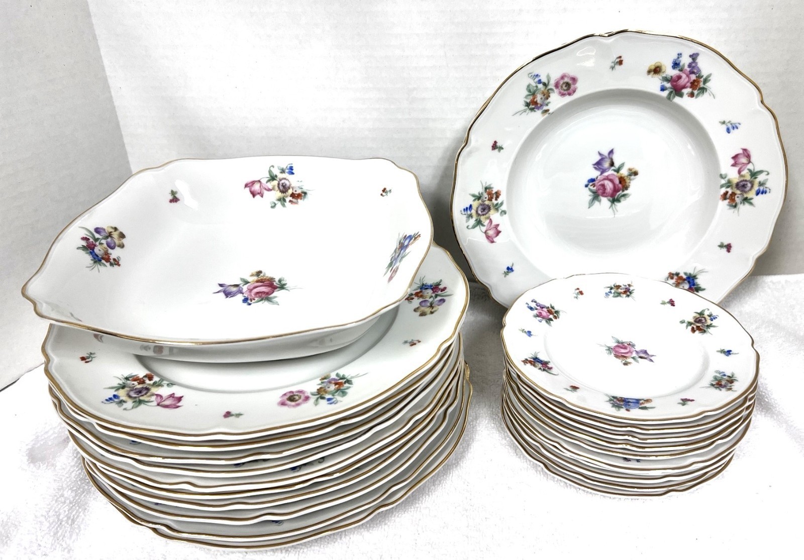 HUTSCHENREUTHER Bristol Floral w Gold Germany Bone China Scalloped Edge