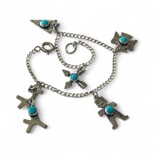 Vintage Sterling Turquoise Native American Fred Harvey Era Sterling Silver Fetish Charm Bracelet Navajo Old Pawn Indian Native American