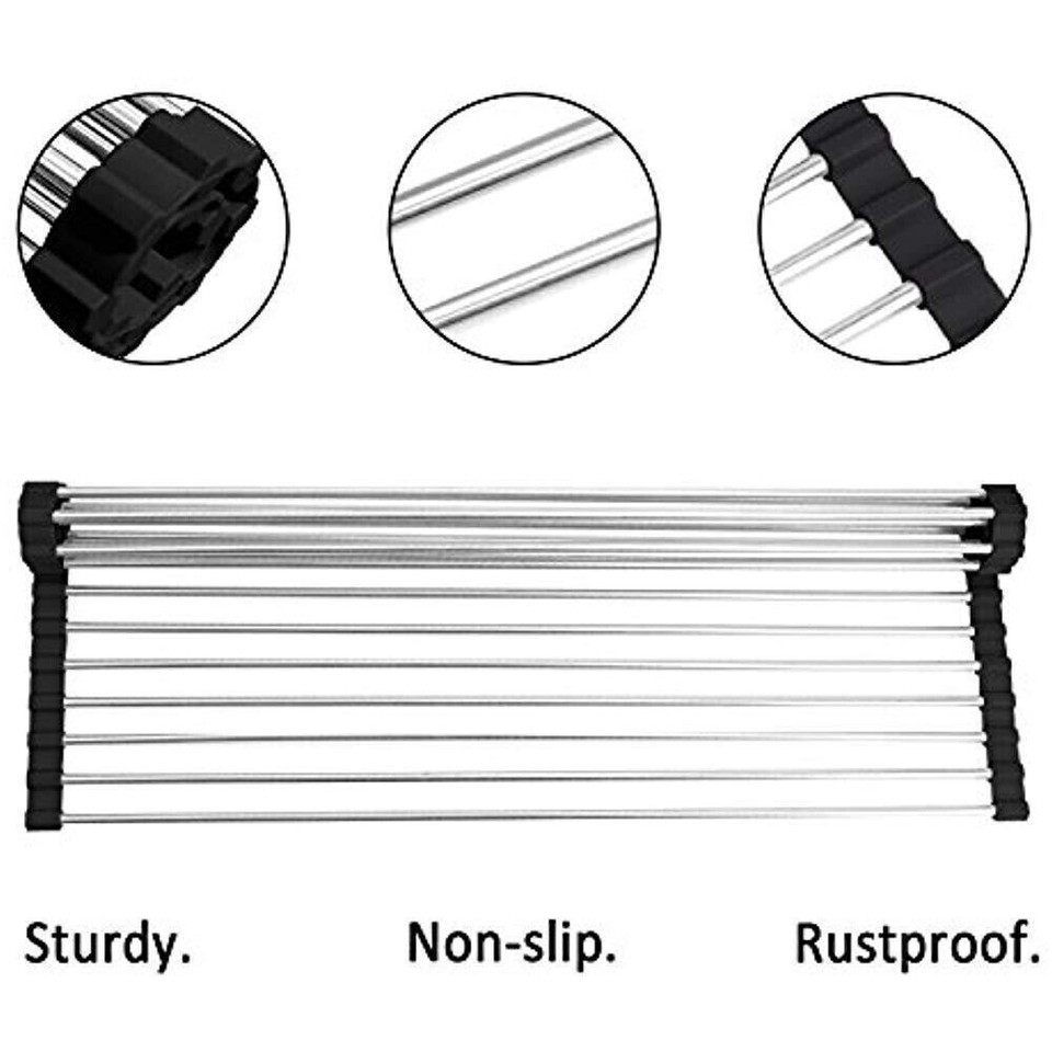 NEW Over the Sink Multipurpose Roll-Up Dish Drying Rack Pan Food Drainer Mat