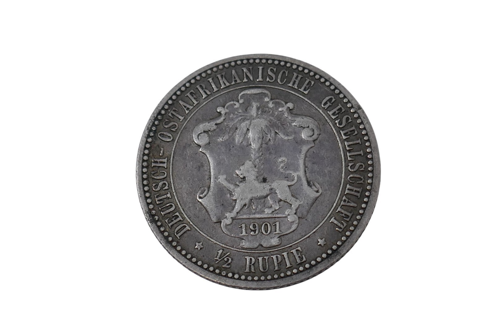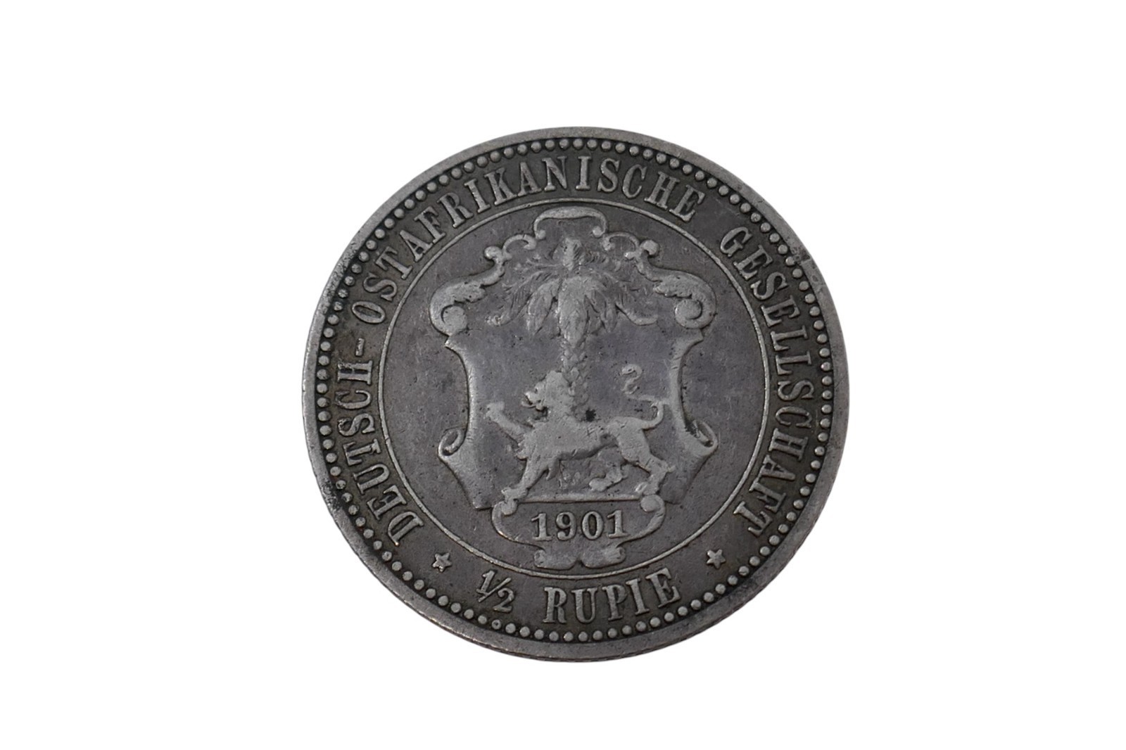 German East Africa 1901 Wilhelm II ½ Rupie Silver Coin ~ Last Year of Issue