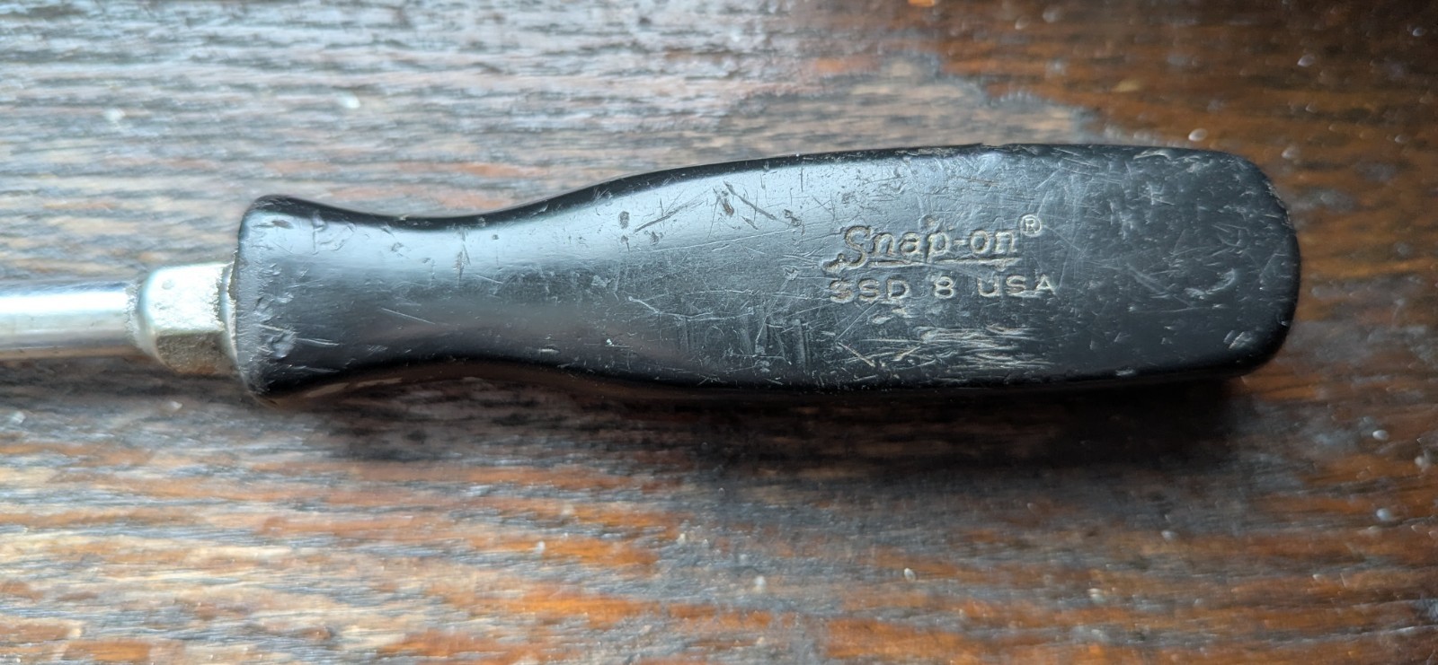 Vintage Snap On SSD8 - 8" Long Flat Tip Blade Black Hard Handle Screwdriver 12"L