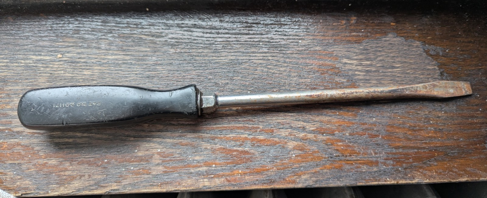 Vintage Snap On SSD8 - 8" Long Flat Tip Blade Black Hard Handle Screwdriver 12" Long