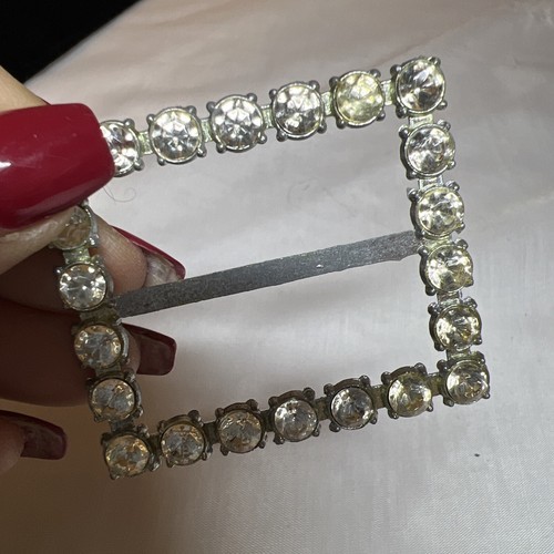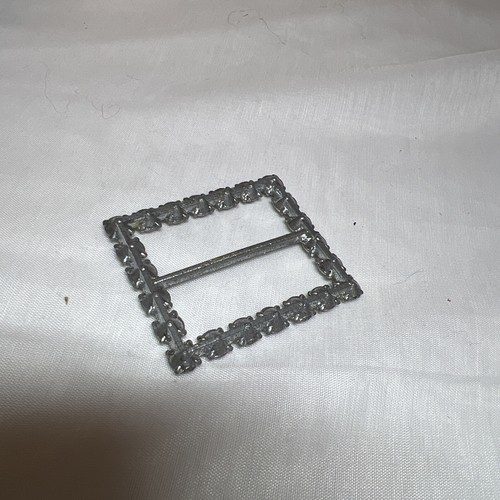 Vintage Clear Rhinestone Silver Tone Pot Metal 2” Sash Belt Buckle