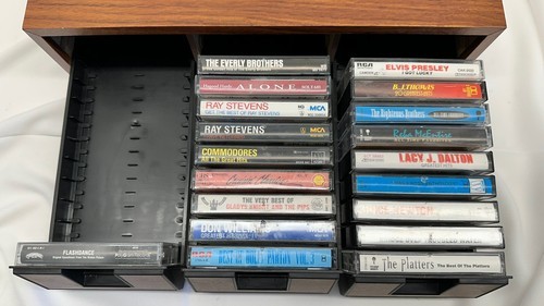 Cassette Holder Storage Case 3 Drawer 27 Tapes, With Cassette Lot Of 19 Tapes
