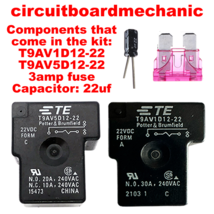 Relays that come in the kit: T9AV5D12-22, T9AV1D12-22, Capacitor 22uf and 3 amp fuse
