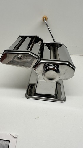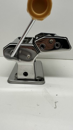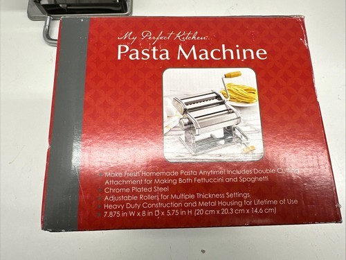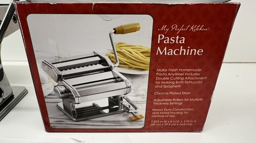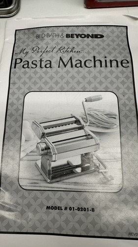 Only used one time. Add some convenience to your kitchen and make pasta-making easy with the Bed Bath Beyond My Perfect Kitchen Manual Pasta Machine. This silver pasta maker is made of durable metal and comes with a manual feature that allows you to easily control the pasta-making process. The long pasta shape ensures that you get a perfect bite every time.