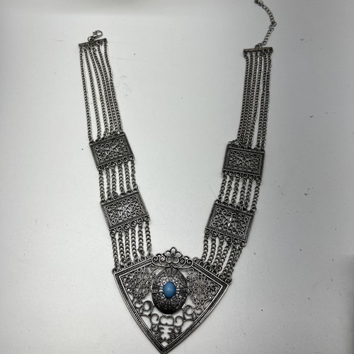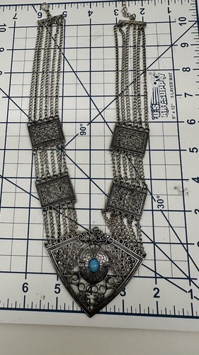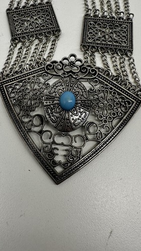 Faux Silver Tone Metal Fringe Teal Stone Bib and similar items
