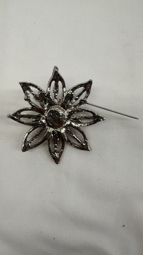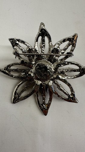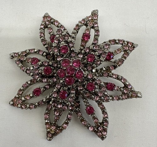 Vintage 3-Tier Pink Flower Rhinestone Large Flower Brooch Pin Silver Finish