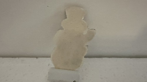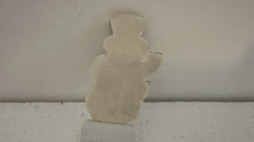 This is from my village. You will find some old hot glue and the paper backing has pulled back but a little glue should fix it. Add a festive touch to your Christmas Village with this adorable Lemax snowman yard sign. The sign is made of mixed materials and features a charming snowman design that will bring joy to your home. Perfect for collectors and holiday enthusiasts alike, this Christmas Village accessory is a must-have for any Christmas occasion.
