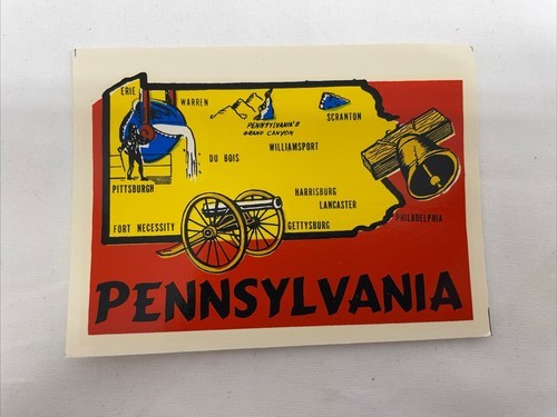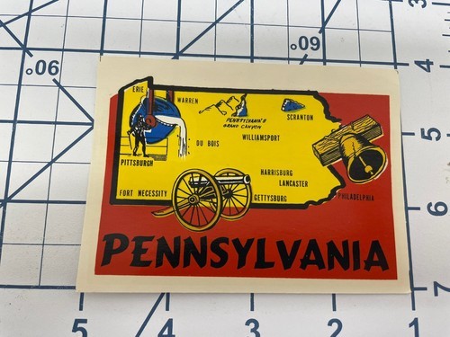 VINTAGE PENNSYLVANIA STATE SOUVENIR LUGGAGE TRAVEL WATER TRANSFER DECAL WESTERN