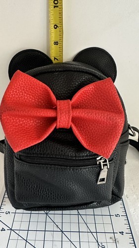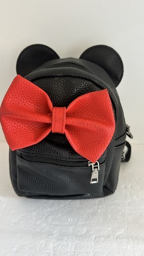 Disney Minnie Mouse Mini Backpack Adjustable Straps Black Classic Red Bow Pouch