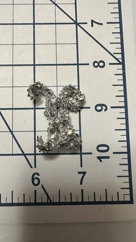 Initial "H" Vintage Brooch Costume Jewelry Silver Tone Rhinestones Unbranded