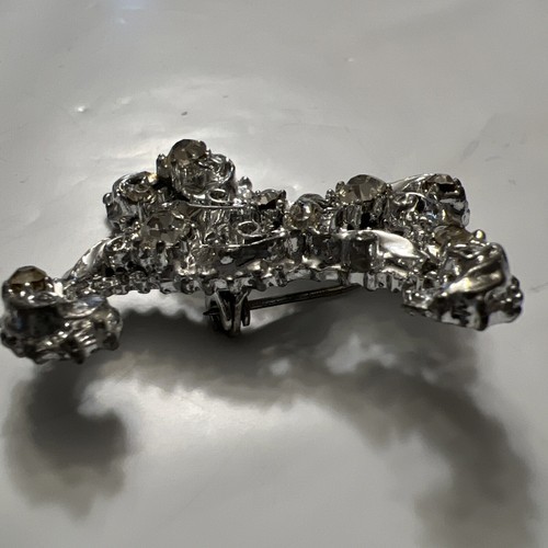 This vintage brooch features a silver tone design with sparkling white rhinestones in a round shape. The brooch is in the style of a letter "H" and is unbranded. It is suitable for occasions like Mother's Day, Christmas, birthdays, and Valentine's Day, making it a thoughtful gift. The retro and fashionable design adds a touch of beauty to any outfit, ideal for both men and women who appreciate unique costume jewelry.
