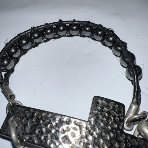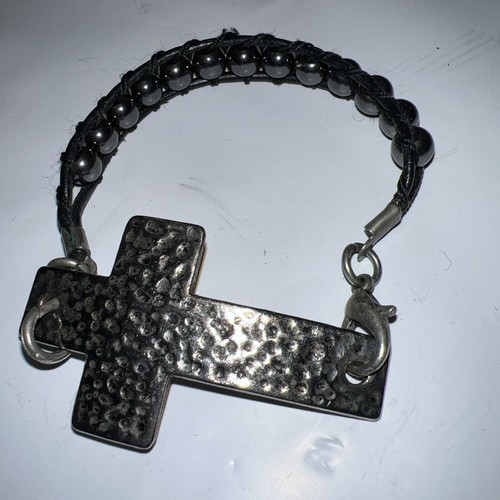 This is a silver tone beaded bracelet featuring a cross design, making it a stylish accessory that also carries religious significance. The bracelet is a piece of jewelry that can be worn as a symbol of Christianity, reflecting the wearer's faith and devotion to the religion. The cross design on the bracelet serves as a reminder of the central symbol of Christianity, making it a meaningful and fashionable accessory for those who follow the faith.