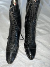 Boots Victorian Edwardian Antique Womans Black Leather High Top Lace Up Shoes