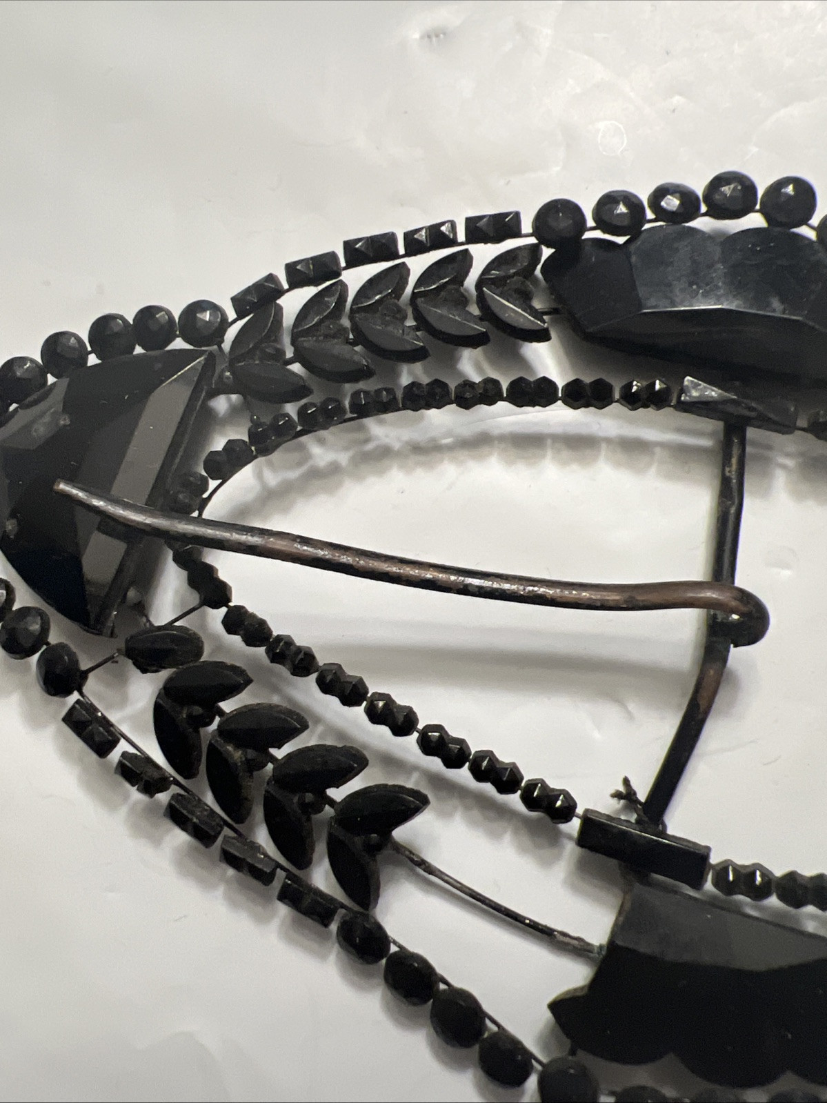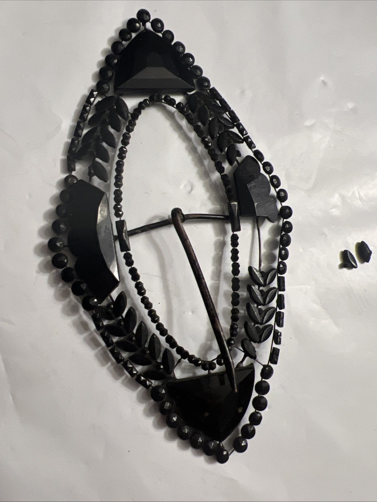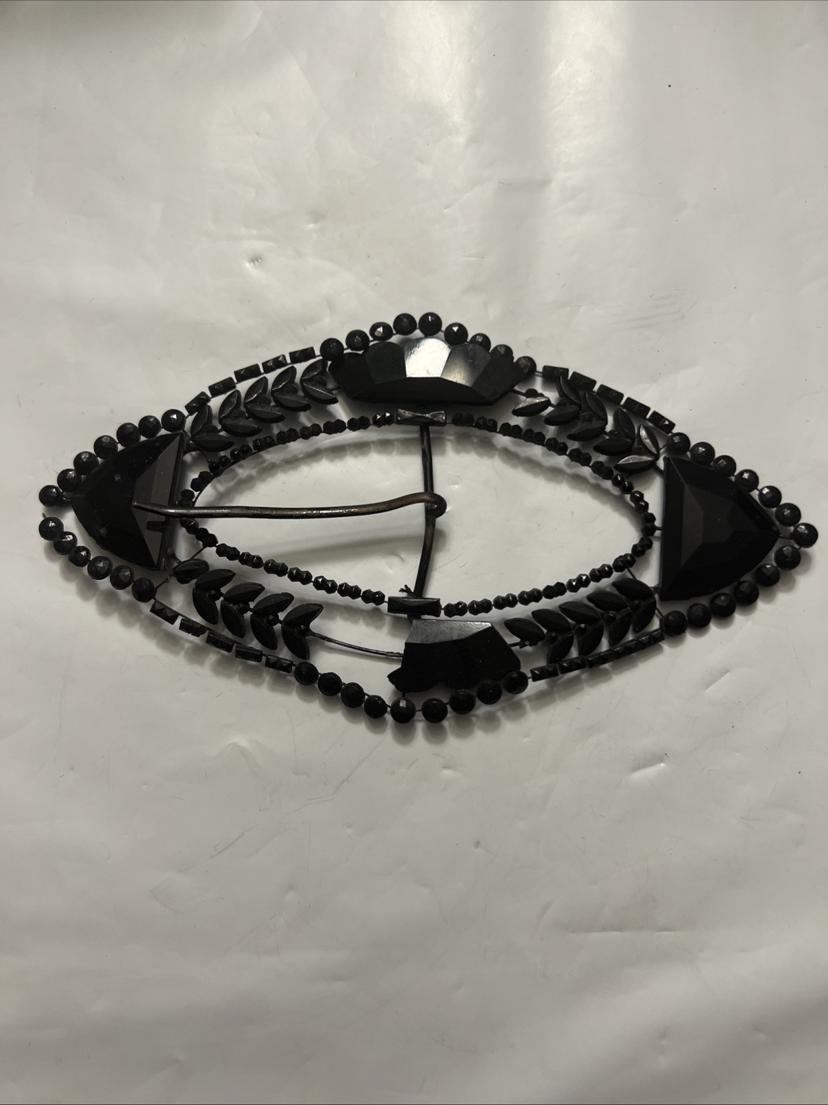 Large Antique Victorian Jet Black Glass Belt Buckle Mourning 7"x4