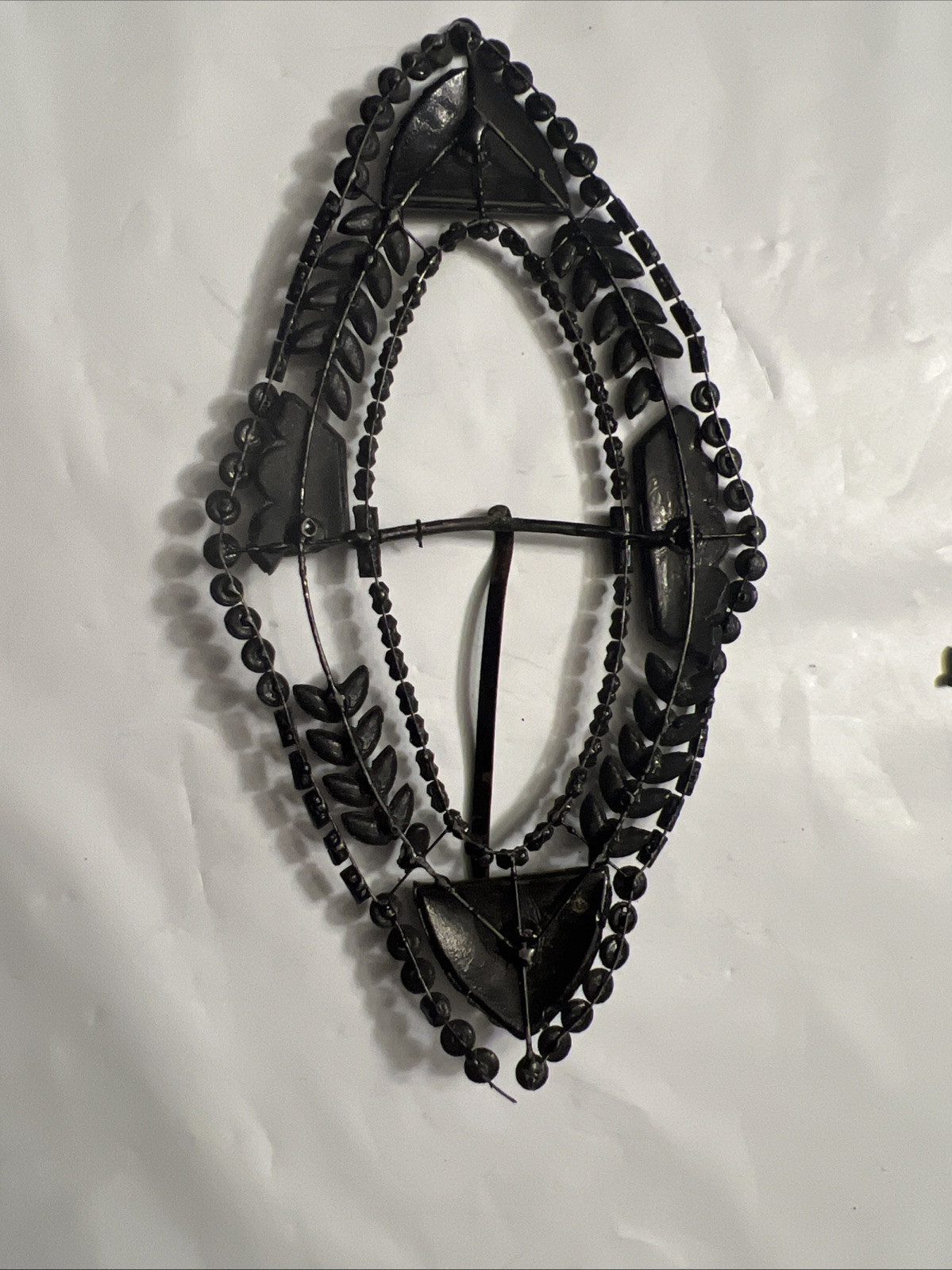 This large antique Victorian belt buckle is crafted from jet black glass, a popular material for mourning jewelry during the era. The buckle features a mourning style design with a secondary stone of jet, adding to its overall aesthetic. Measuring 7 inches by 4 inches, this unique piece is a statement accessory that reflects the mourning customs and fashion trends of the Victorian era.