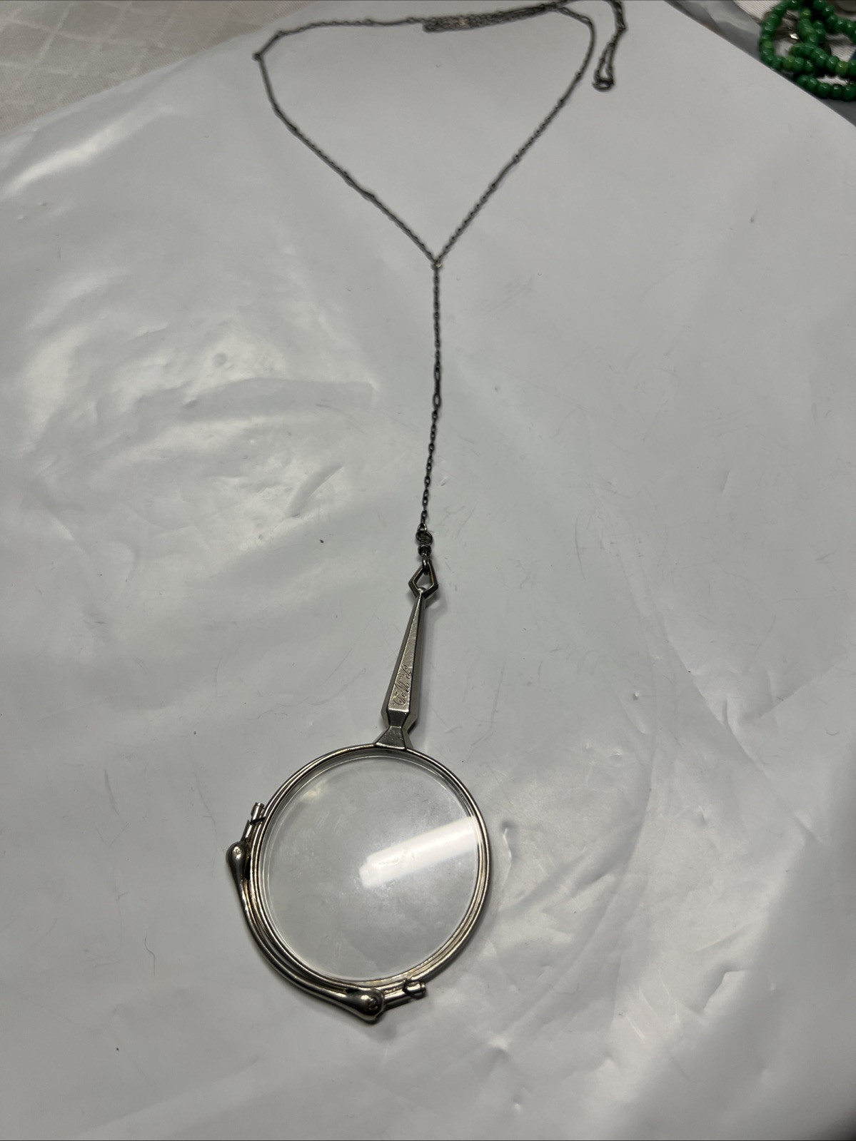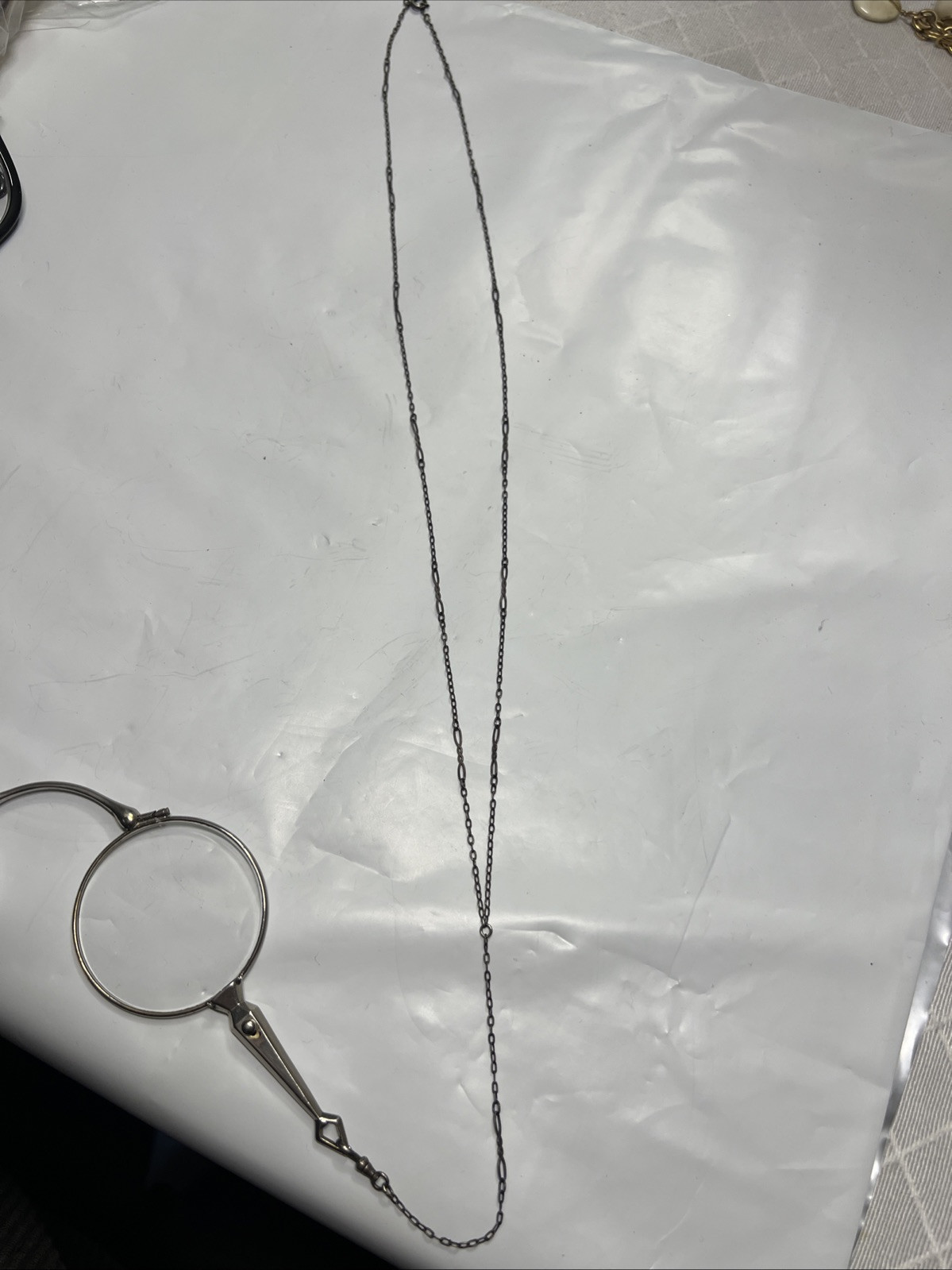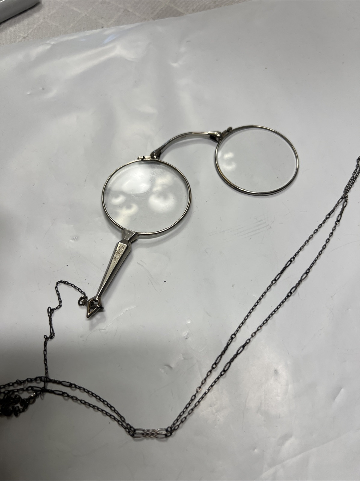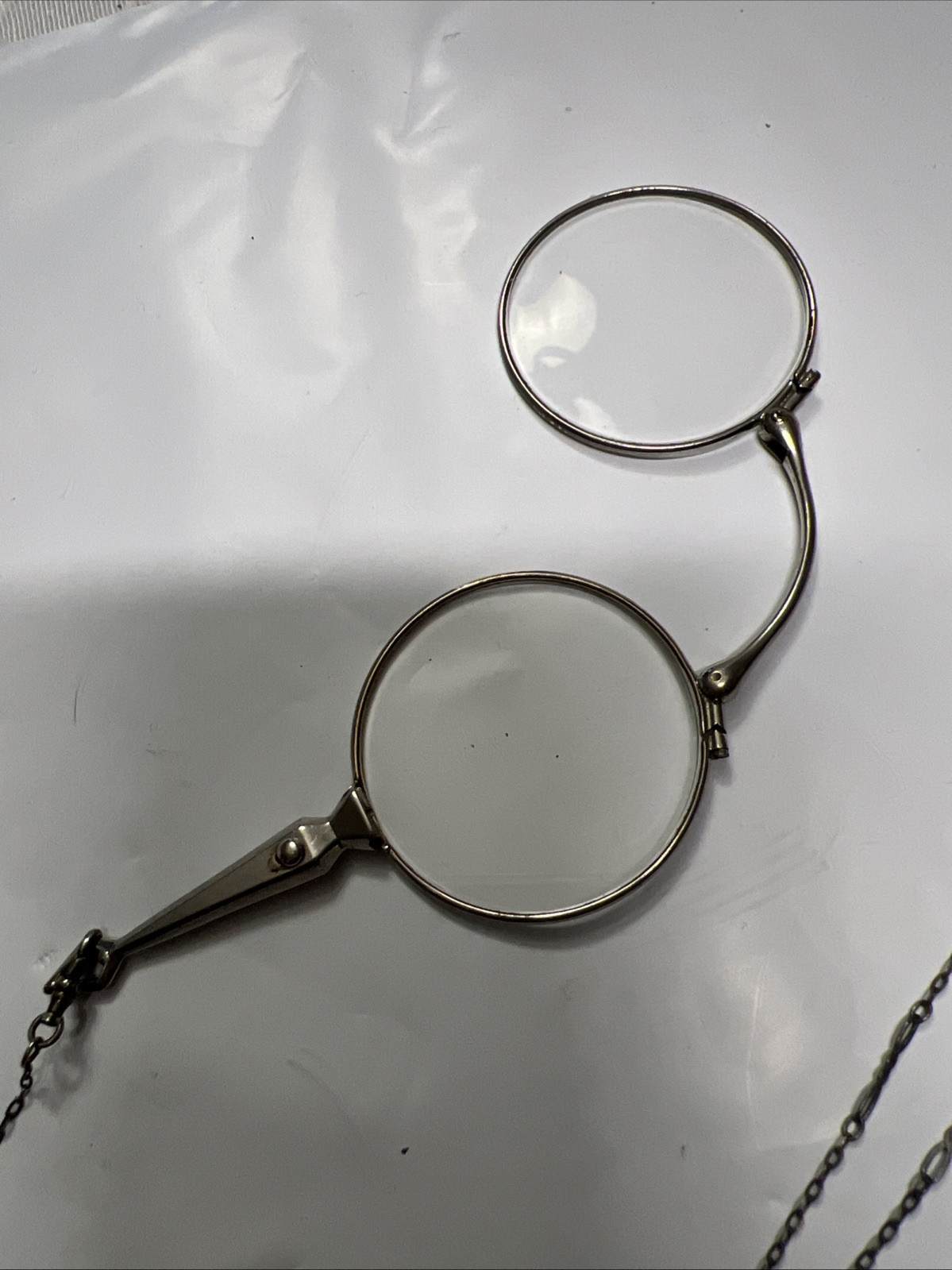 Victorian Folding Opera Glasses with Sterling Silver Chain Stamped