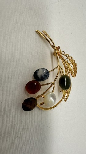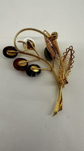 This unique piece is perfect for any fashion-forward woman looking to add a pop of color to her outfit. It has a vintage feel, but its timeless design ensures it will remain in style for years to come. The brooch pin is perfect for adding to a jacket lapel, scarf, or even a purse for a touch of elegance. Don't miss out on the opportunity to own this stunning piece of jewelry.