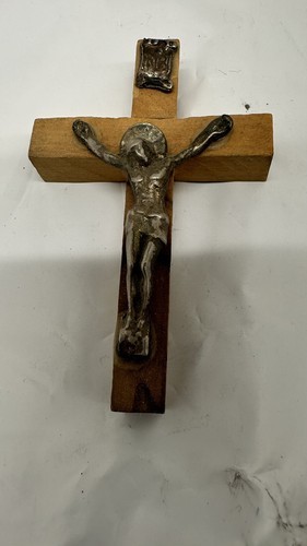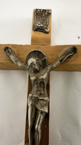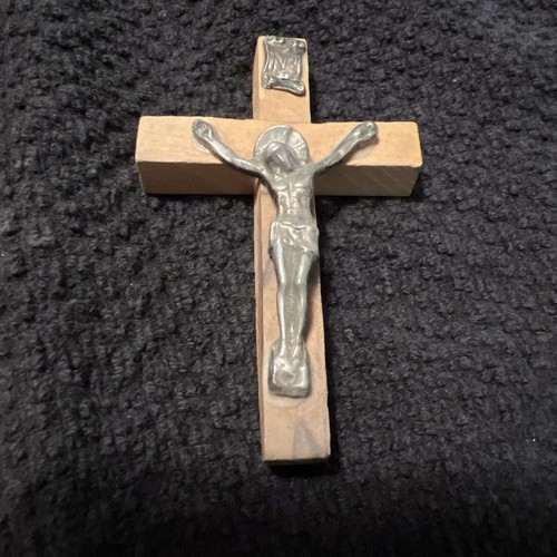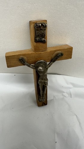 This Inri wooden mini cross with silver pendant is a beautiful piece that represents the Christianity religion. The brown color of the cross and the silver material of the pendant make it a perfect addition to any collection. The cross was made in Jerusalem, adding to its historical significance.