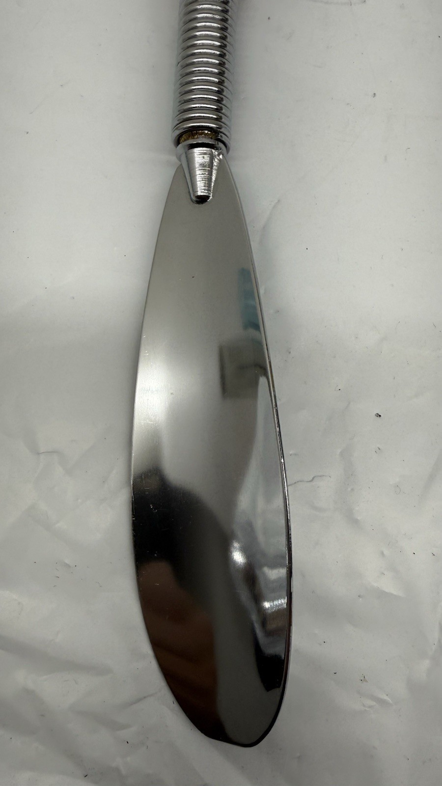 This vintage carved horse head shoe horn is made of durable plastic in a striking black and brown color scheme. With a 22" length, this adult unisex shoe accessory is perfect for casual occasions and adds a unique touch to any outfit. Originating from Japan, this shoe horn is a stylish and functional addition to any vintage collection.