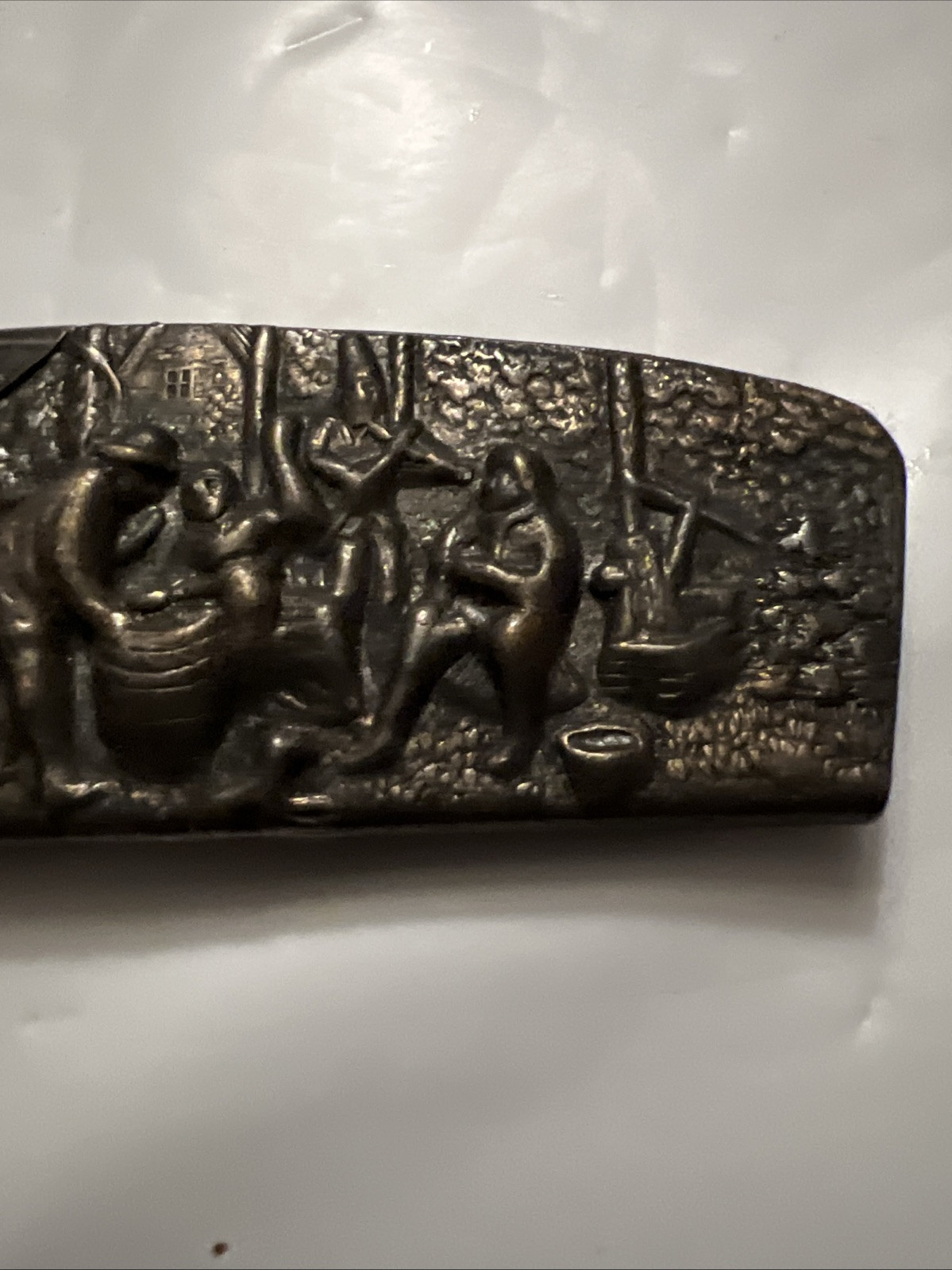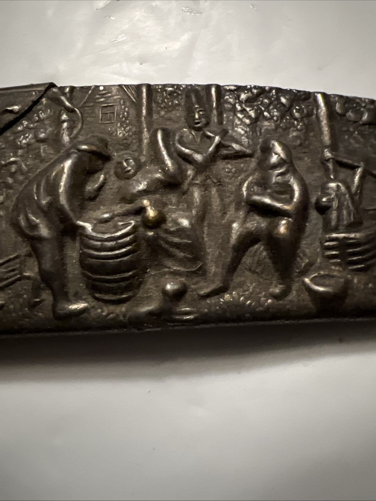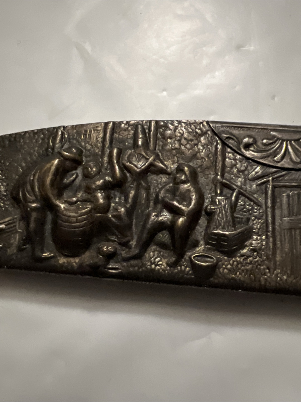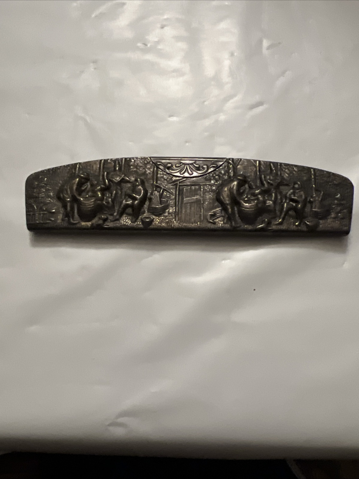 Denmark Repousse Beveled Hand Travel Mirror & Celluloid Comb Set antique Defect