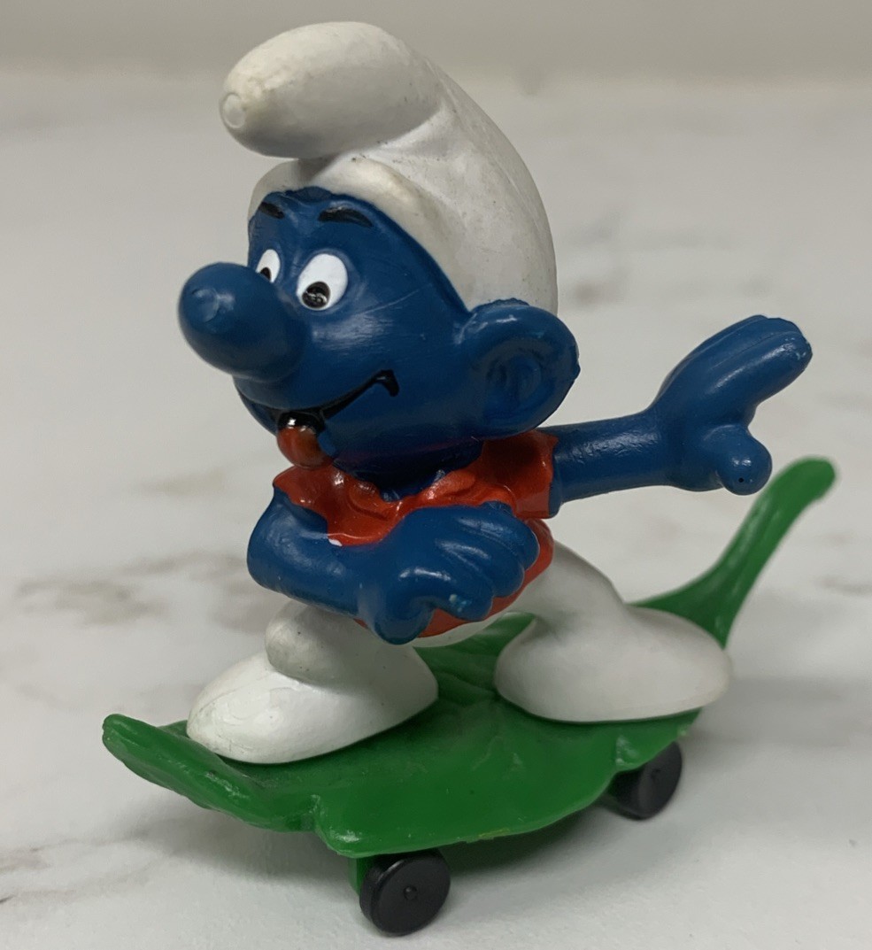 Vtg 1978 Schleich Smurfs Skateboarding Smurf PEYO PVC Figure Leaf Skateboard
