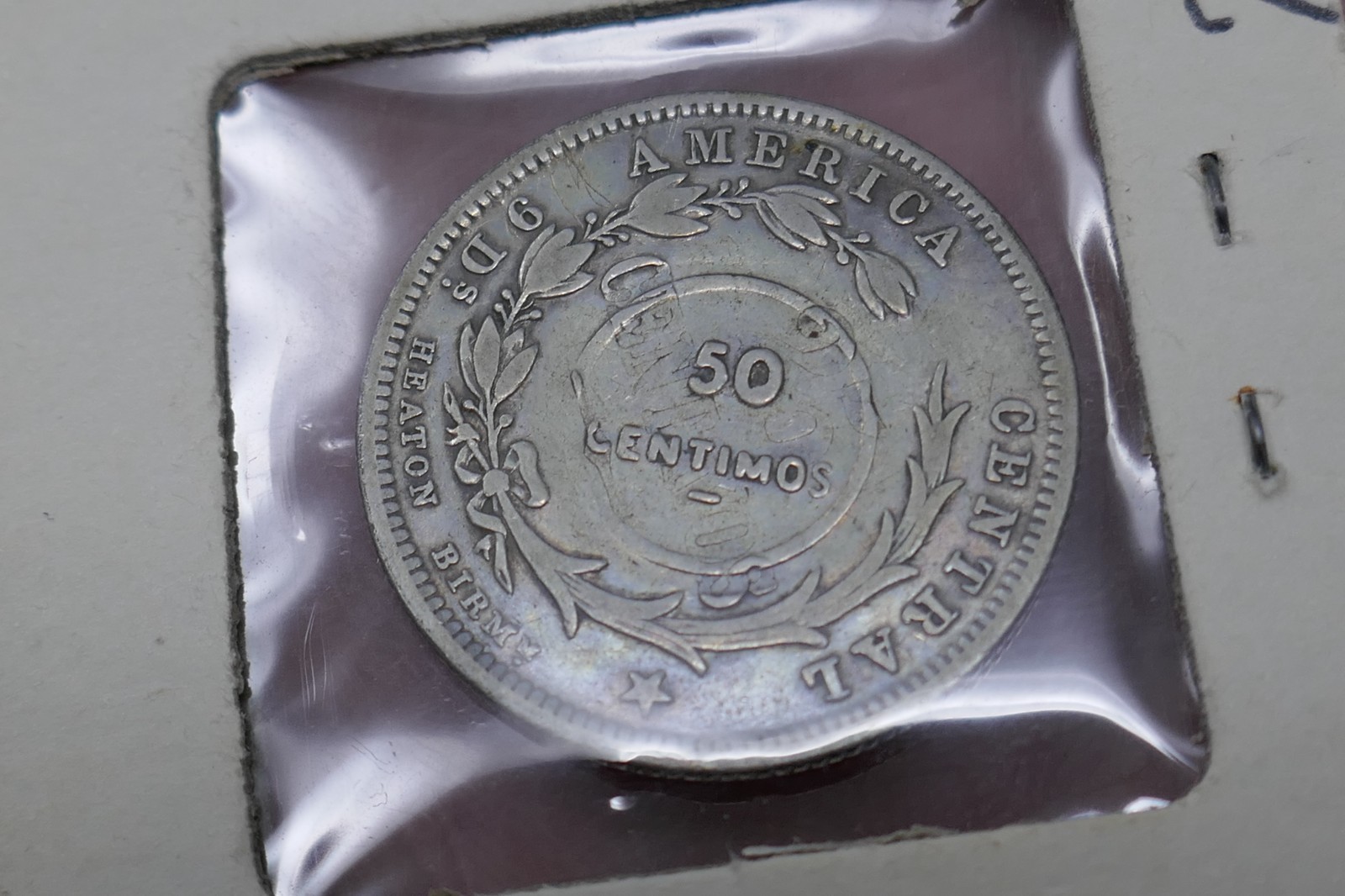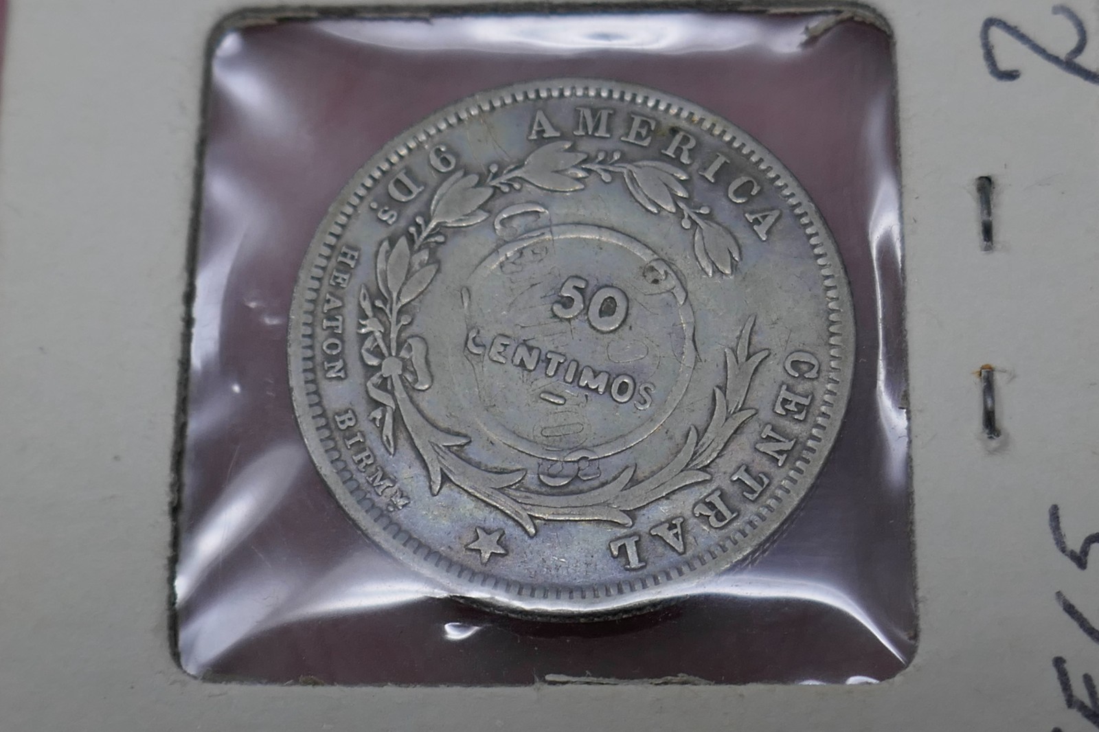 Costa Rica 1893 Counterstamped 1923 Coinage 50 Centimos Silver Coin