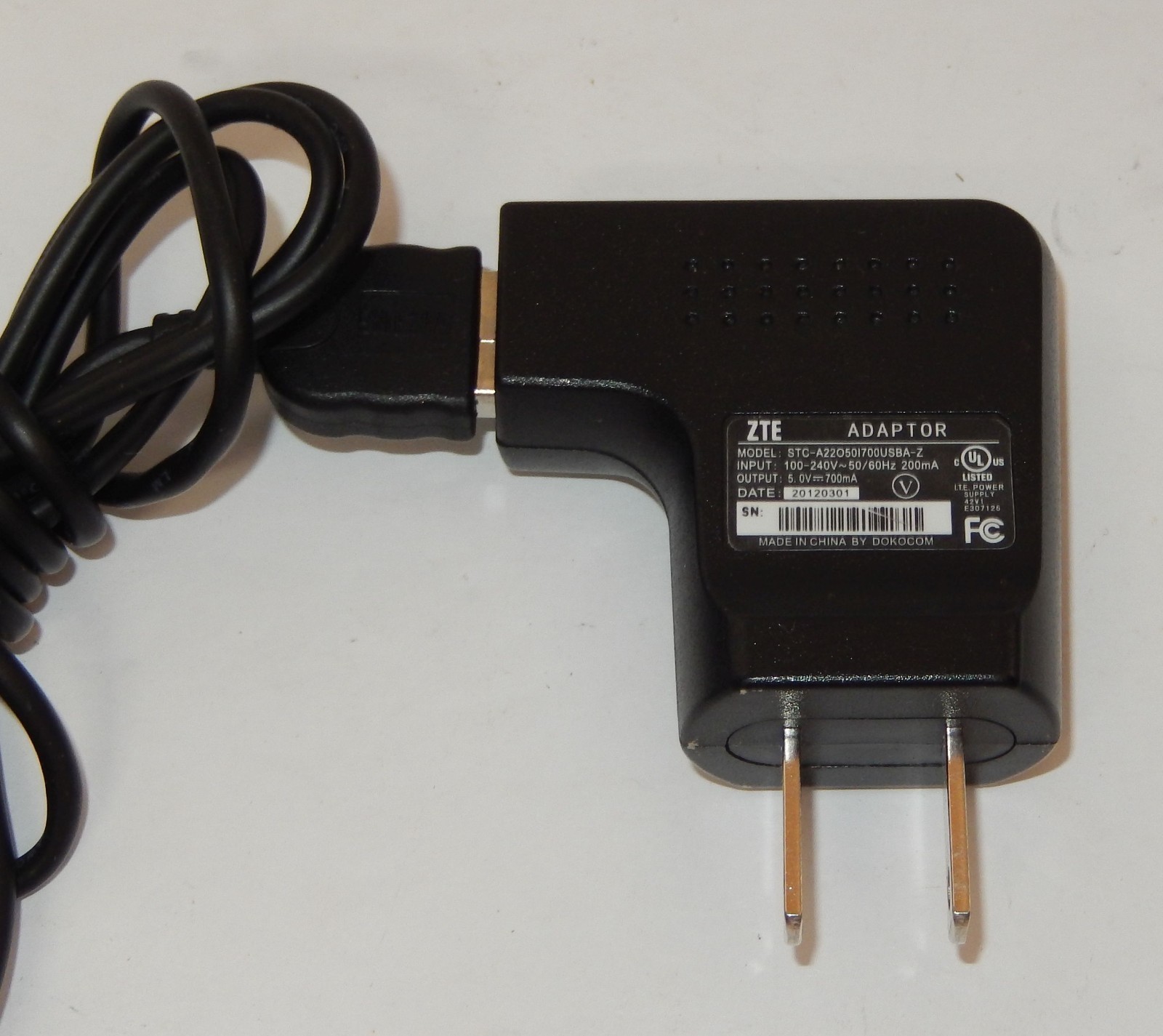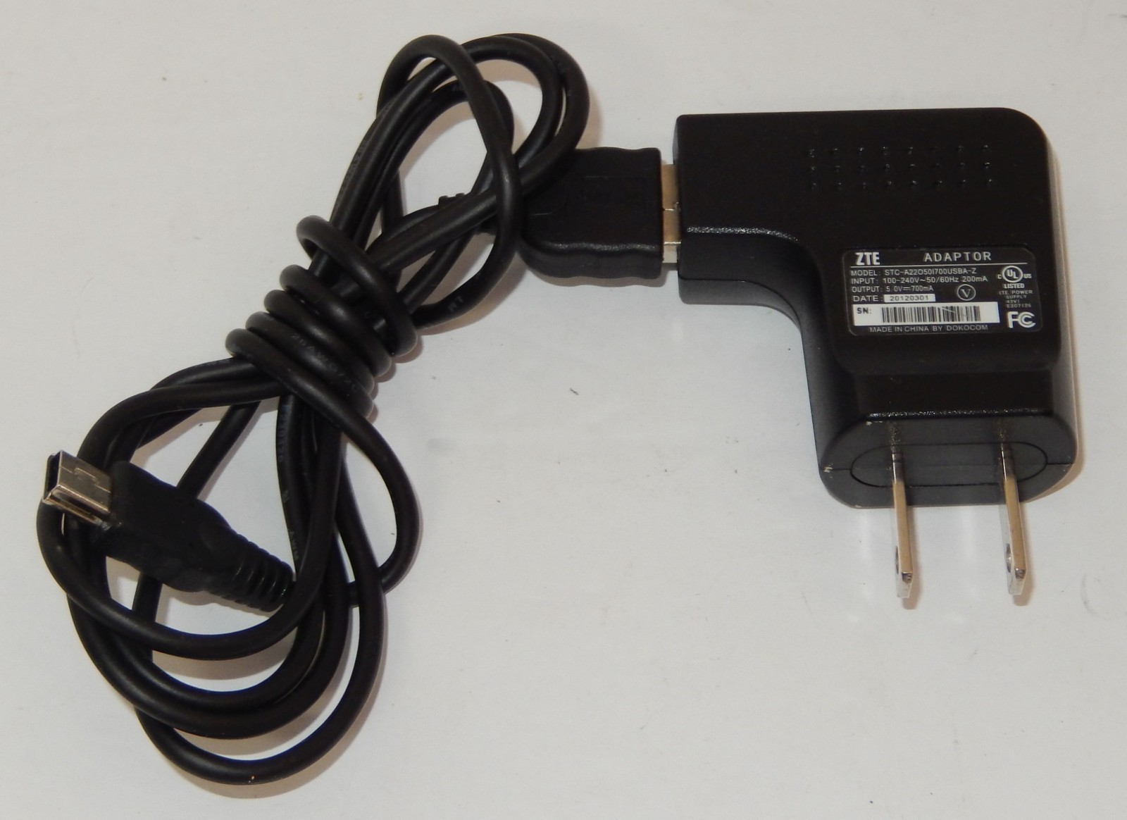 For sale is a ZTE STC-A220501700USBA-Z USB Travel Wall charger 5.0V-700 mAh. Its in Good Used condition. Tested and Works Great. please view all the pictures provided. ask any and all questions prior to purchasing. Fast same or next day shipping with delivery confirmation.