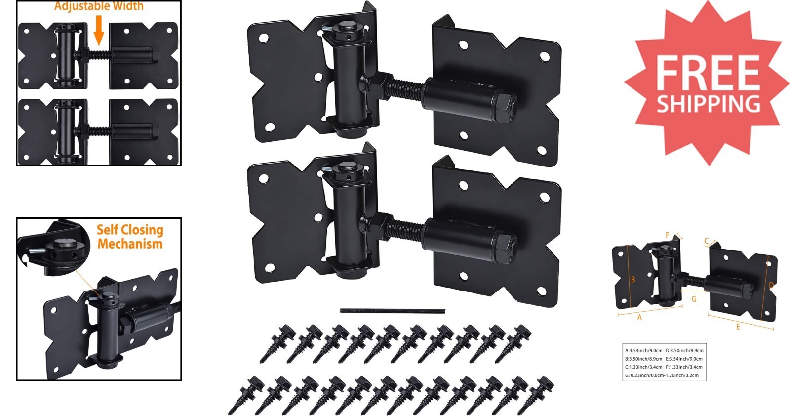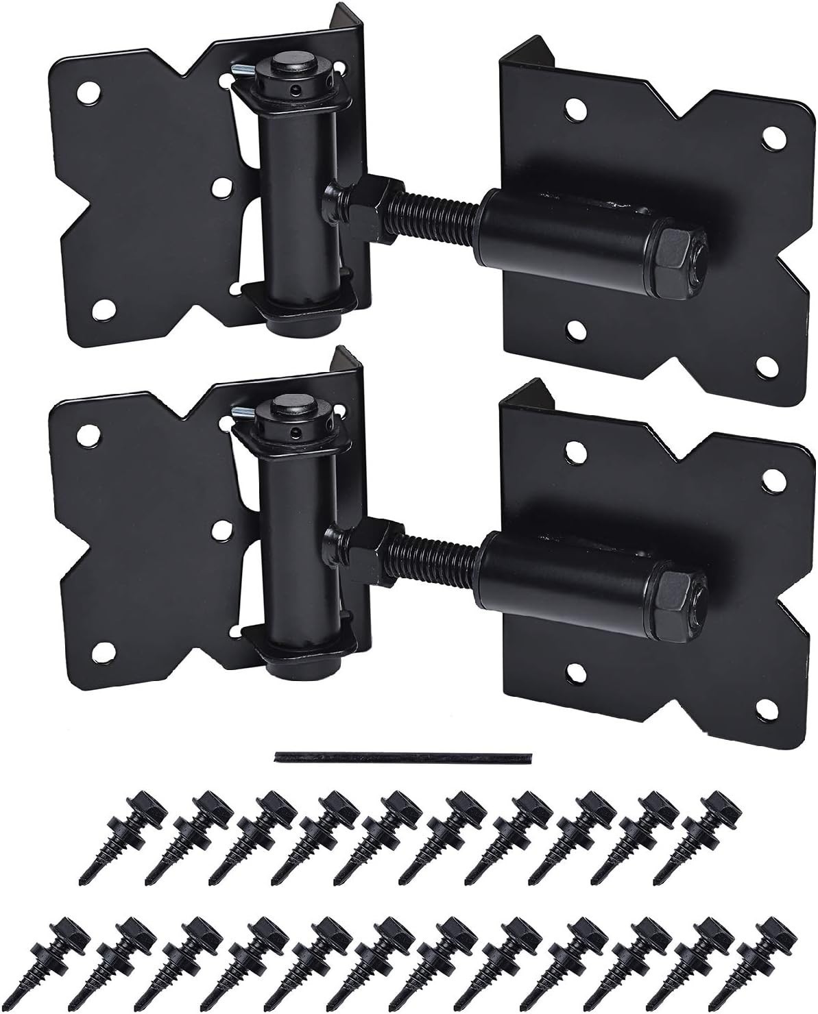 Upgrade your fence with our Self-Closing Adjustable Gate Hinges, designed for durability and convenience. Made from high-strength galvanized steel with a weather-resistant powder coating, these hinges are built to last outdoors or indoors. Easily adjustable from 0.23" to 1.25" to fit various gate sizes, and equipped with tension control to ensure your gate closes smoothly without sagging or dragging. Installation is straightforward with included screws and a handy adjustment tool. Perfect for enhancing your DIY home projects with reliable, professional-grade hardware.