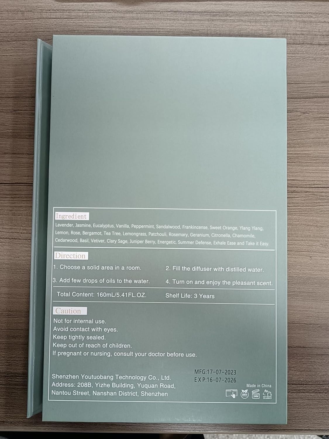 Scent: Basil,Bergamot,Citronella,Clary Sage,Eucalyptus,Frankincense,Geranium,Jasmine,Juniper Berry,Lavender,Lemon,Lemongrass,Patchouli,Peppermint,Rose,Rosemary,Sandalwood,Sweet Orange,Tea Tree,Vanilla,Vetiver,Ylang Ylang,Chamomile,Cedarwood,Energetic
