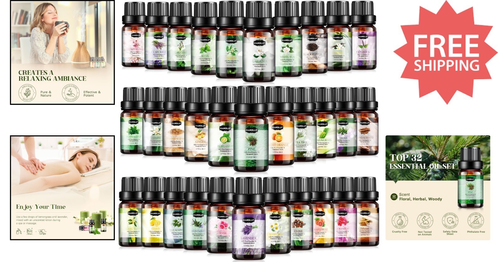 All-Natural 32 x 5ml Essential Oils Set: Cruelty-Free Aromatherapy