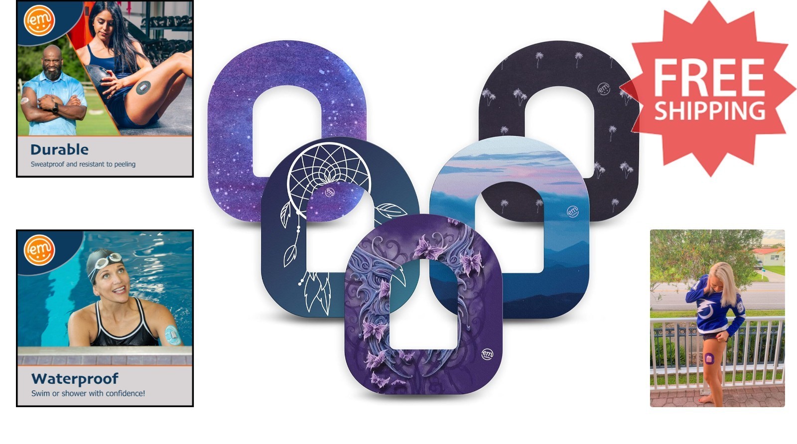 5 Non-Fraying & Waterproof CGM Sensor Adhesive Patches - Personalize Your Device