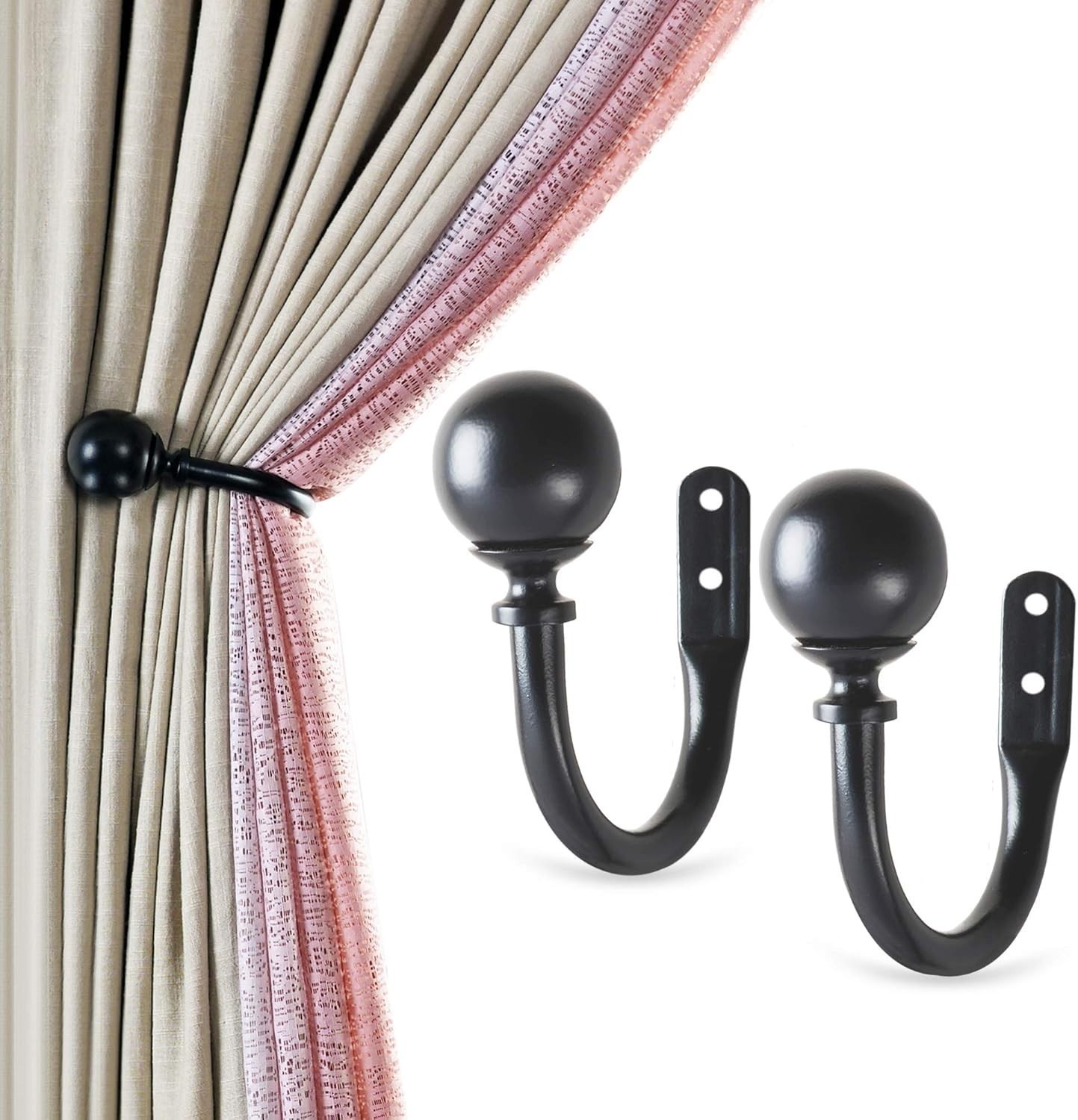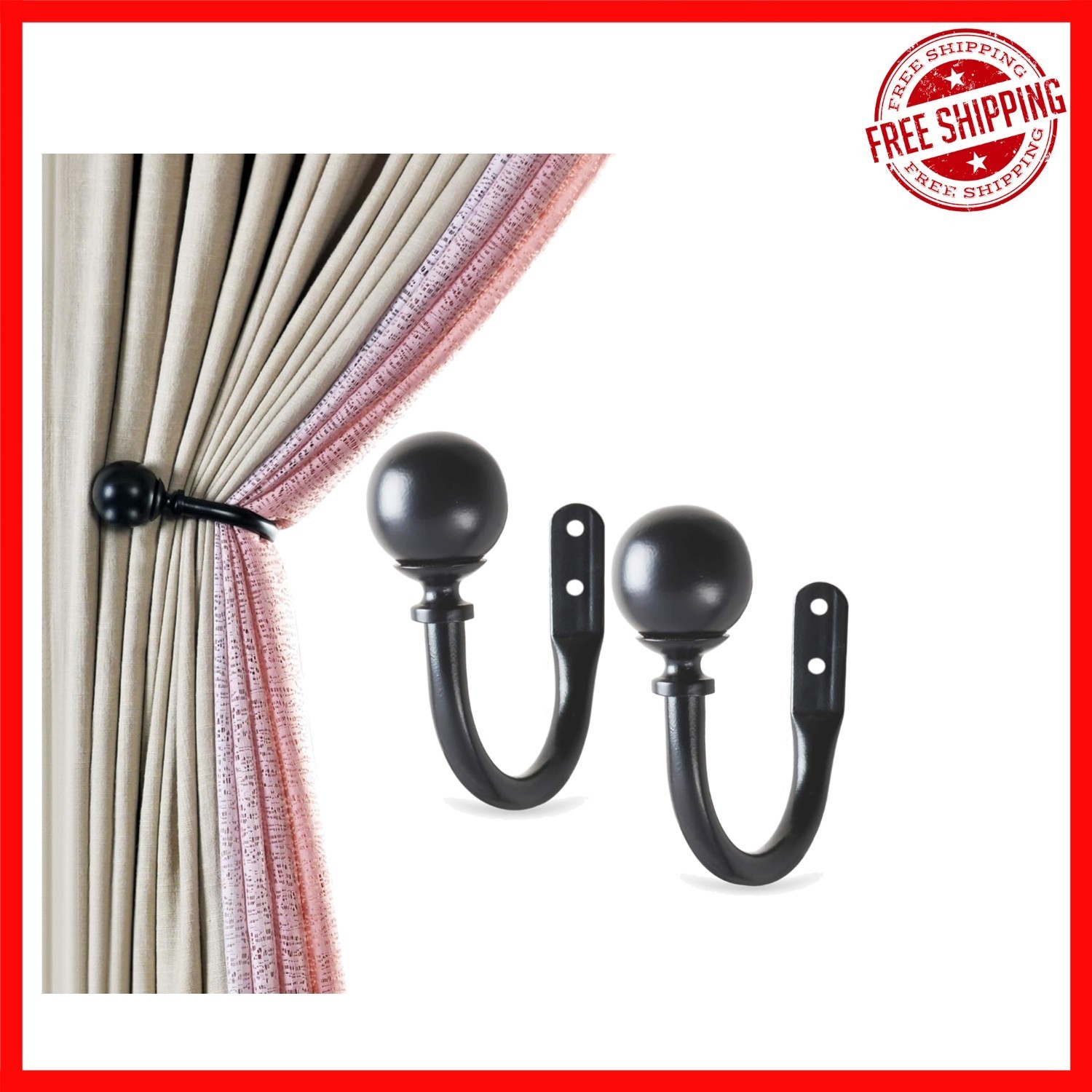 Elegant Black Matte Curtain Holdbacks - Heavy-Duty Decorative Tiebacks, Set of 2