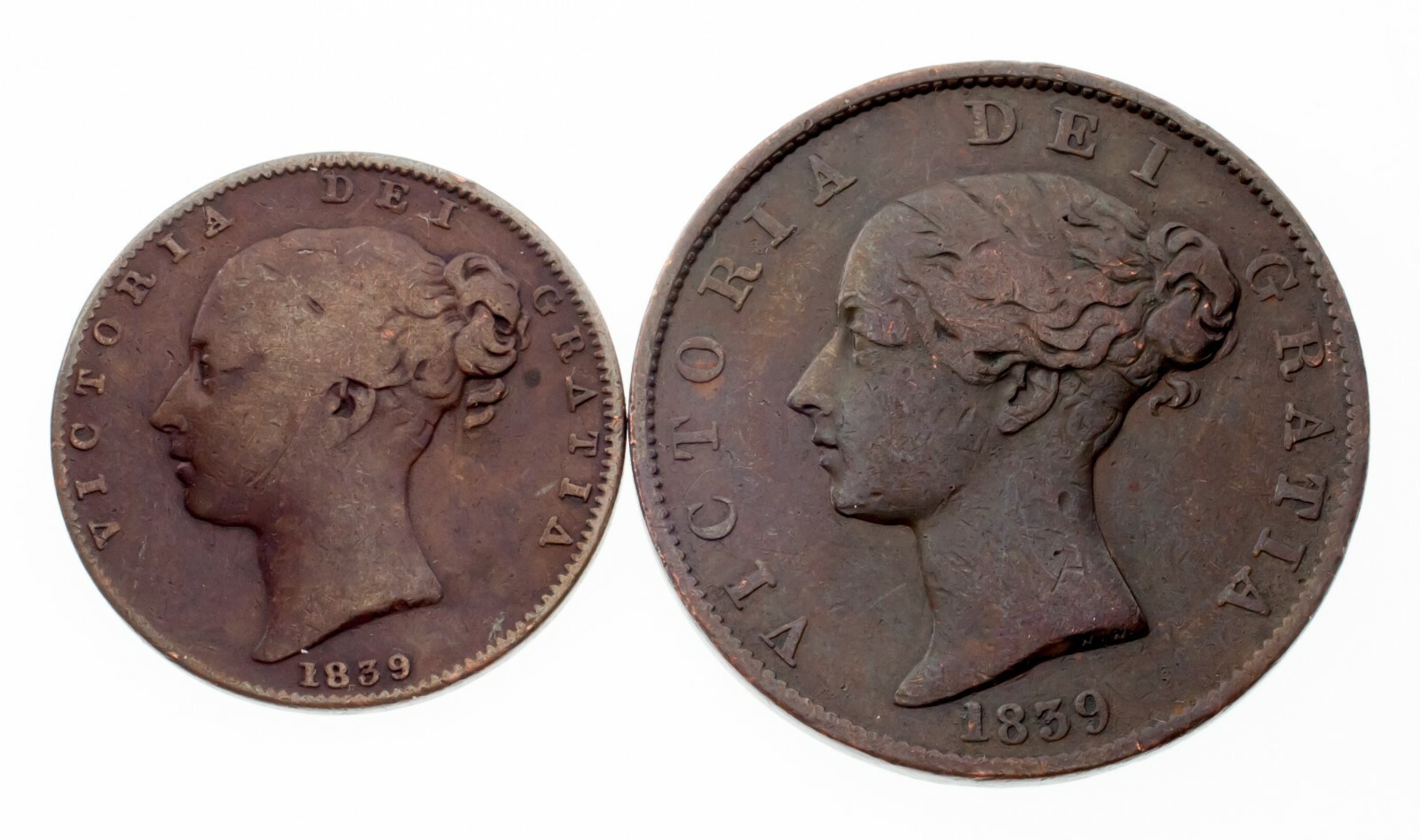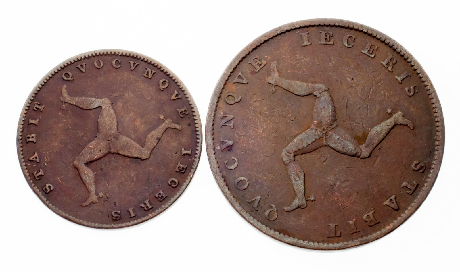 Los 2 1839 Isle of Man -Münzen im VF -Zustand (Fette und 1/2 Penny)